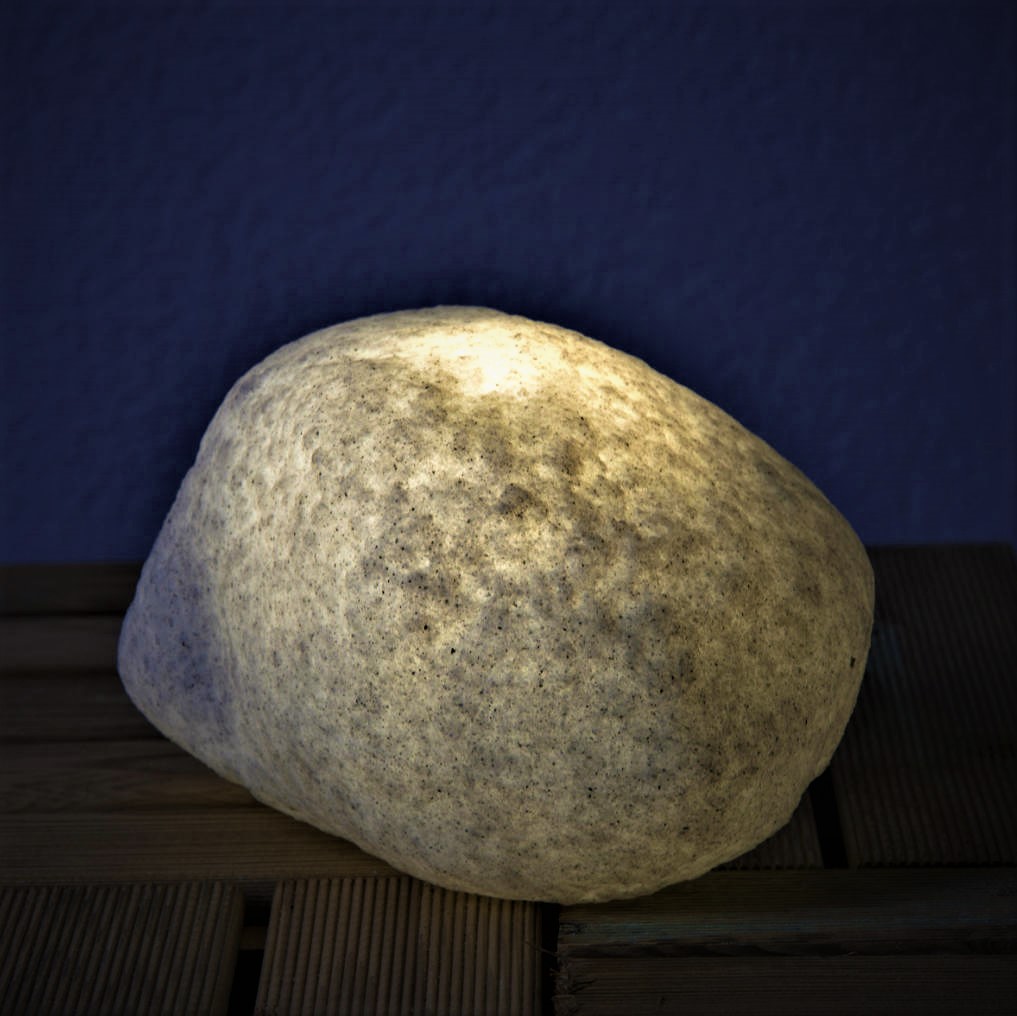 Die originelle Außenleuchte in Findelstein-Optik hat ein Gewicht von 1,0 kg. Die Akku Aussenleuchte Garten ist UV-beständig und temperaturbeständig. Die Leuchte ist seewasserbeständig und beständig gegen chlorhaltiges Schwimmbadwasser. Die Outdoor-Leuchte wird ab Werk vom deutschen Hersteller mit 3 Jahren Garantie geliefert. Schauen Sie als Ergänzung Ihrer Außendekoration mal unter dem folgenden Link Aussenleuchte mit Akku Details zur nächstgrößeren granitgrauen Steinleuchte mit Akku-Betrieb an.