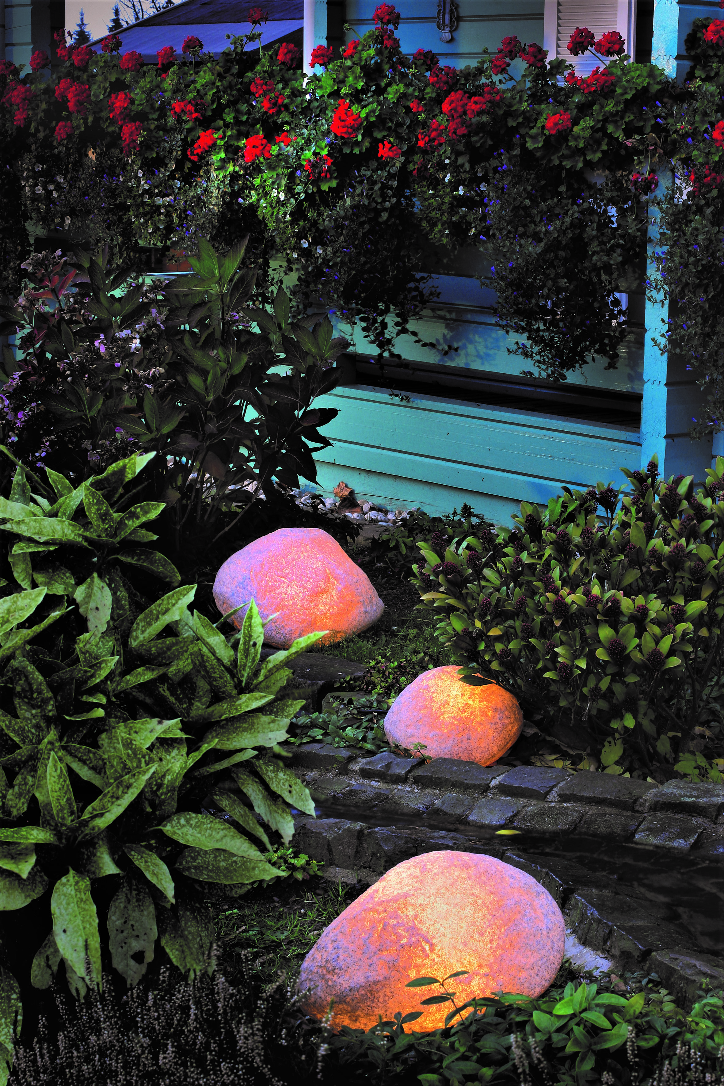 Die originelle Gartendekoration Akku Aussenleuchte Garten ist von den Maßen 27 cm breit und 19 cm hoch und bringt stilvoll Abwechslung in Ihre Außenanlagen und Beete. Die granitgraue Bodenleuchte ist in dieser Ausführung mit Akku mobil einsetzbar- kabellos und ohne jeden Stromanschluß. Je nach Belieben lässt sich die absolut wetterfeste Gartenbeleuchtung flexibel an jedem beliebigen Standort als dezente Lichtquelle im Vorgarten oder Ihren Beeten einsetzen. Die kabellose Gartenbeleuchtung fügt sich optisch mit ihrer Findelsteinform sehr dekorativ in Ihre Außenanlagen ein. Dabei sorgt die pfiffige Gartenbeleuchtung am Abend für eine punktuelle stimmungsvolle Beleuchtung. Das Gehäuse der mobilen Akku Aussenleuchte Garten wird aus Polyethylen und hochwertigem Kunststoff mit einer Steinstruktur in Granitoptik nach dem Vorbild der Natur hergestellt. Die granitgraue Steinleuchte integriert sich stilvoll in ihr natürliches Umfeld. Setzen Sie mit beginnender Dämmerung tolle Lichtakzente in Ihren Außenanlagen und verändern Sie den Platz nach Belieben unabhängig von Steckdosen und Stromanschlüssen.