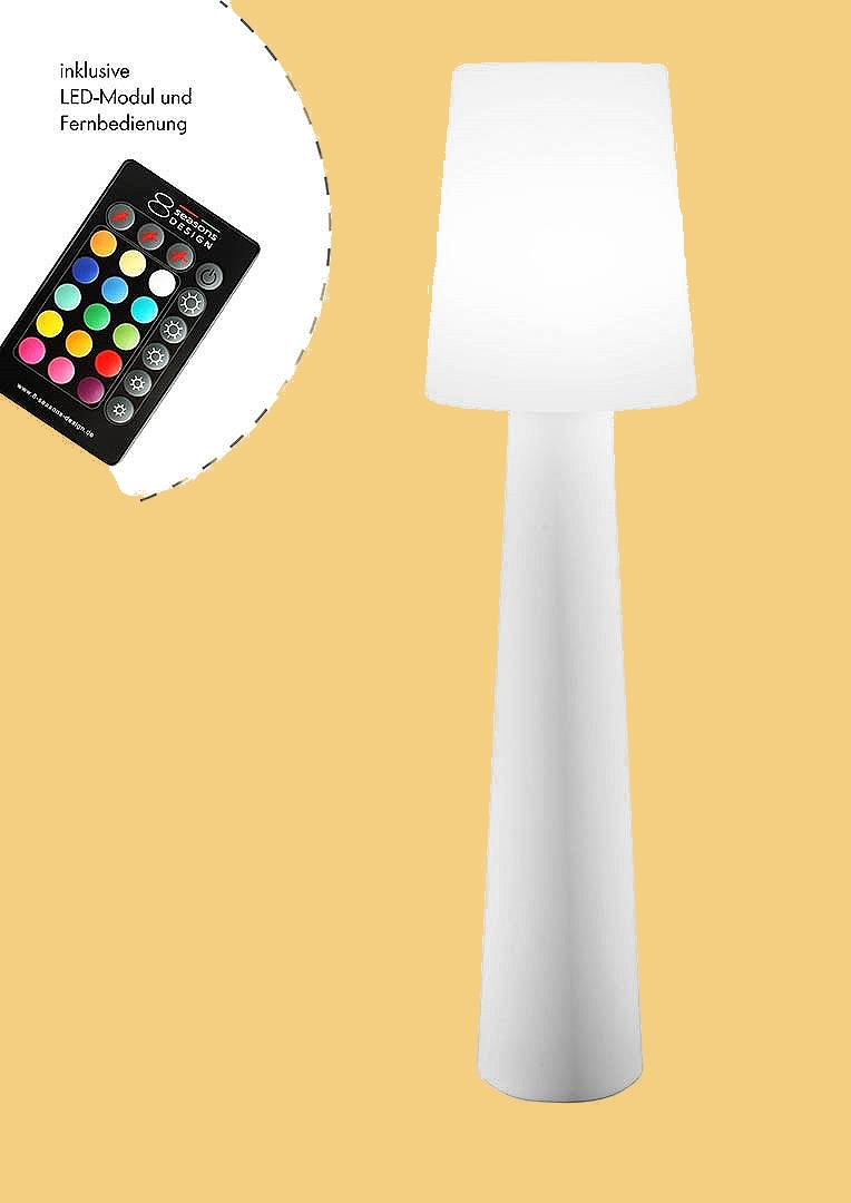 Die weiße Außen-Stehleuchte modern wirkt stilvoll und elegant zugleich. Die mobilen Schirmleuchten Modell Harmony sorgen im Outdoorbereich stylisch für eine gemütliche Wohnzimmer-Atmosphäre. Kreativ und nach vorhandener Stimmung lassen Sie Ihren Außenbereich mit der Fernbedienung kinderleicht in einem farbigen oder auch weißem Licht erstrahlen. Die vom Material robuste und wetterfeste Außenleuchte wirkt dabei sowohl beleuchtet als auch unbeleuchtet sehr dekorativ. Ob zum Anlaß eines Events, kleinerer und größerer Feiern oder einfach als den Abend begleitendes stimmungsvolles Lichtambiente, die dekorative Außen-Stehleuchte modern erweckt Ihre Außenanlagen mit aufkommender Dunkelheit zum Leben. Mit ihrem gradlinigen Design zieht die Garten-und Terrassenleuchte Harmony sicher so manche Blicke auf sich. Zaubern Sie je nach Stimmung und Geschmack farbige Lichtmomente und wecken Sie Emotionen.