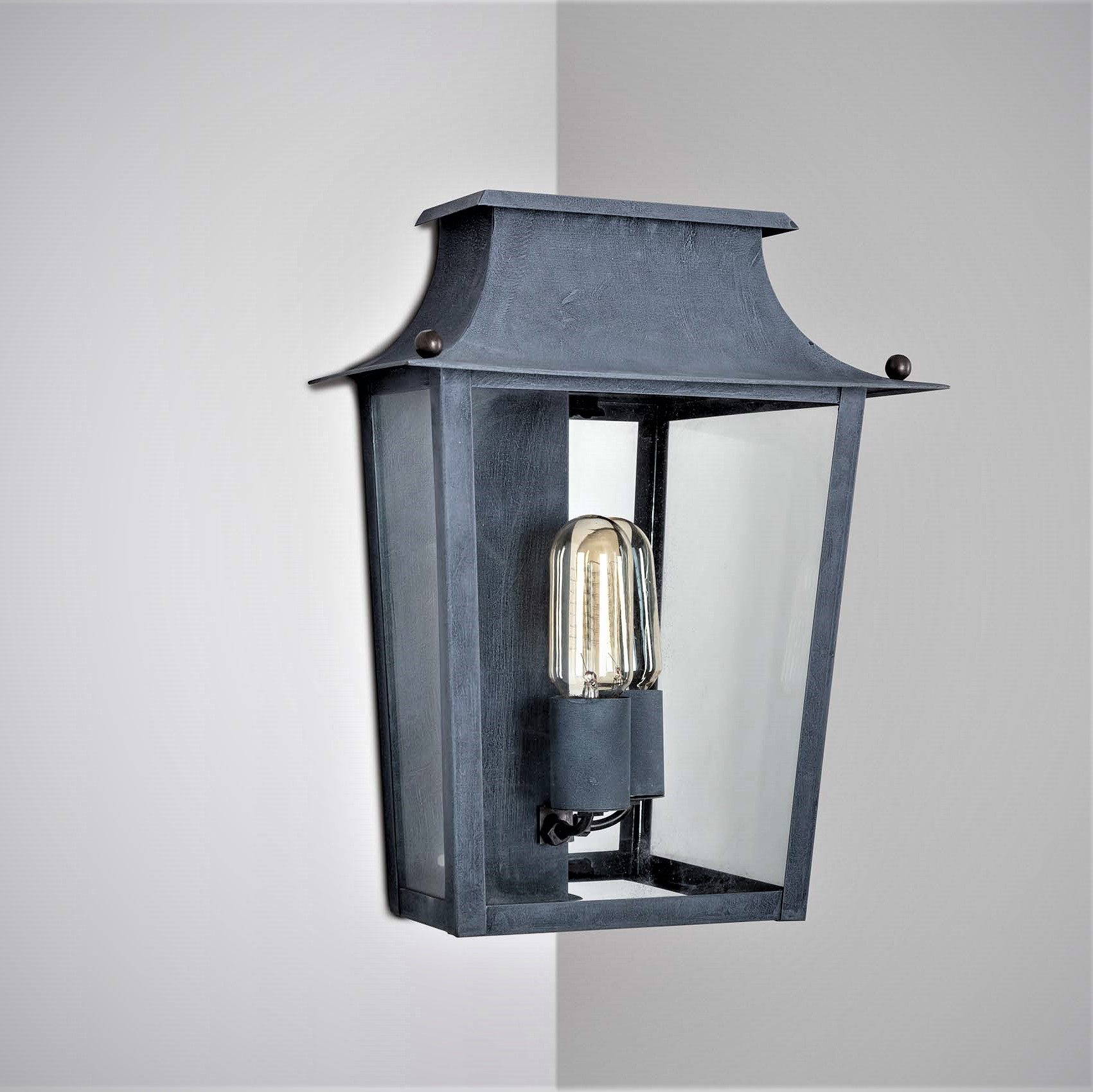 Die stilvolle Aussenbeleuchtung Außenecke Modell Passy wird hier in der Ausführung mit Zink angeboten. Die dekorative Außenleuchte zieht authentisch mit ihrem französischem Flair sicherlich so manche Blicke auf sich. Bei der in echter Handarbeit gefertigten Eck-Außenwandleuchte wird für die Fenstereinsätze Echtglas verarbeitet. Die Designer-Wandleuchte offeriert mit ihrem Finish in Alt-Zink nach außen eigenen Charme. Die dekorative Wandlaterne für Haus-und Gebäudeecken ist auf Anfrage gern auch in Messing oder auch Nickel und mit weiteren verschiedenen Finishes erhältlich. Die Schlichtheit der Linien, die von zarten Messingkugeln unterstrichen wird, macht die Ecklaterne der Passy-Kollektion zu einem großen Klassiker. Das besondere Design findet seine Inspiration im 19. Jahrhundert. Die Aussenbeleuchtung Außenecke Modell Passy lässt sich sehr gut mit einer Vielzahl von architektonischen Stilen kombinieren.