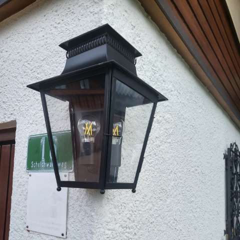 Die Aussenbeleuchtung Ecke schwarz ist mit der Schutzart IP 23 versehen und sollte daher eher an etwas geschützteren Hausecken montiert werden. Für die Wetterseite würden wir eine höhere Schutzart (mindestens IP 44) empfehlen. Die Aussenbeleuchtung Ecke schwarz entspricht der Schutzklasse 1. Die Eckleuchte antik-klassisch der Modellserie Cluny wird mit Zink oder Messing gefertigt und ist mit vielen weiteren Finishes (Oberflächen) erhältlich. Sprechen Sie uns gern darauf an. Wir empfehlen als Alternative -ebenfalls als Eckbeleuchtung geeignet- unsere antike Wandlampe Louis mit halbrunder Laternenform. Leuchtmittel sind bei Lieferung nicht enthalten.