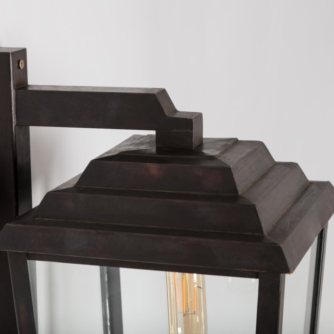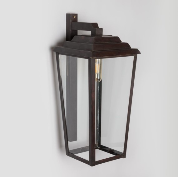 Die stilvolle Außenbeleuchtung Landhausstil aus der französischen Leuchtenmanufaktur Lumart eignet sich als dekorative Terrassenbeleuchtung ebenso wie für den vorderen Hauseingangsbereich. Die vom Design authentische Wandleuchte für den Außenbereich punktet mit ihrer länglichen Form, ihrer Transparenz, klaren Linien sowie ihrem wellenförmig abfallend designten Leuchtendach. Die klassisch bis zeitlose Aussenleuchte wird aus Messing mit dem Finish Alt-Messing hergestellt und genügt hohen Ansprüchen bezüglich der Qualität und ihres Designs. Die dekorative Außenwandleuchte wird in diesem Modell aus Messing hergestellt, ist aber wie alle unseren französischen Leuchten auch in Zink oder Nickel erhältlich. Weitere Finishes (Oberflächenbehandlung) finden Sie unter dem folgenden Link Finishes. Sprechen Sie uns bei aufkommenden Fragen gern an. Die vom Design klassisch-moderne Wandllaterne ist von den Maßen ohne Wandarm 45 cm hoch und 23 cm breit. Die Außenbeleuchtung Landhausstil Modell Izapan wird bei uns inklusive des perfekt für die Leuchte passenden Wandarmes angeboten.