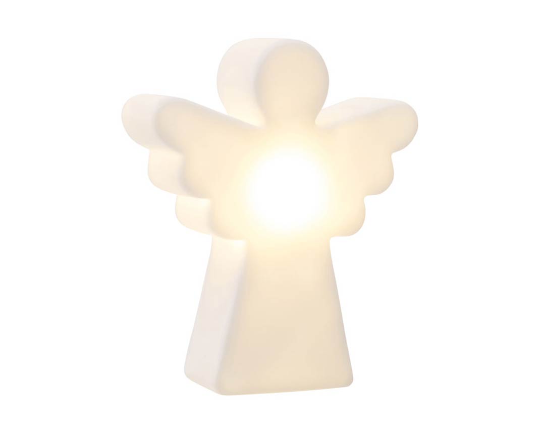 Unsere dekorativen Design-Aussenbeleuchtung Solar-Weihnachtsengel (im Zweier-Set) sind ein schöner Eye-Catcher in der Dunkelheit- insbesondere zur Advents-und Weihnachtszeit. Die weißen Motivleuchten überzeugen neben einer tollen Optik mit umweltfreundlicher und ebenso stromsparender Solar-Lichttechnik. Diese vom Thema weihnachtliche Gartenbeleuchtung eignet sich aufgrund des hochwertigen Solarmoduls auch für die dunkle Jahreszeit mit weniger Sonnenstunden. Die hochwertige Aussenbeleuchtung Solar-Weihnachtsengel wird hier mit einem LED-Solarmodul kombiniert. Der Akku lädt sich eigenständig am Tage auf. Dank des verbauten Dämmerungssensors startet die Beleuchtung mit aufkommender Dunkelheit vollautomatisch. Die Leuchtdauer beträgt bei vollständiger Akku-Ladung etwa 6 Stunden. Die Solar-Weihnachtsengel sind mit einem festverbautem LED-Modul ausgestattet. Die Lichtfarbe warmweiß liegt hier bei 2700 bis 3000 Kelvin. Das externe Solarpaneel wird mit integriertem Li-ion Akku (1800mA) kombiniert. Die Motivleuchte Weihnachtsengel wird inklusive 4 Metern Zuleitung geliefert. Daher kann der leuchtende Engel durchaus auch getrennt vom Solarpaneel aufgestellt werden. Das Solarpaneel sollte dabei Richtung Sonne ausgerichtet sein. Nutzen Sie die wetterfeste Gartenleuchte als Bodenleuchte zur Dekoration Ihres Außenbereichs, stimmungsvolle weihnachtliche Vorgartenbeleuchtung oder zur optischen Auflockerung von Beeten. Die modernen Gartenleuchten im weihnachtlichen Design kommen bei Groß und Klein gut an. Der einzelne Weihnachtsengel weist ein Gewicht von 700 Gramm aus.