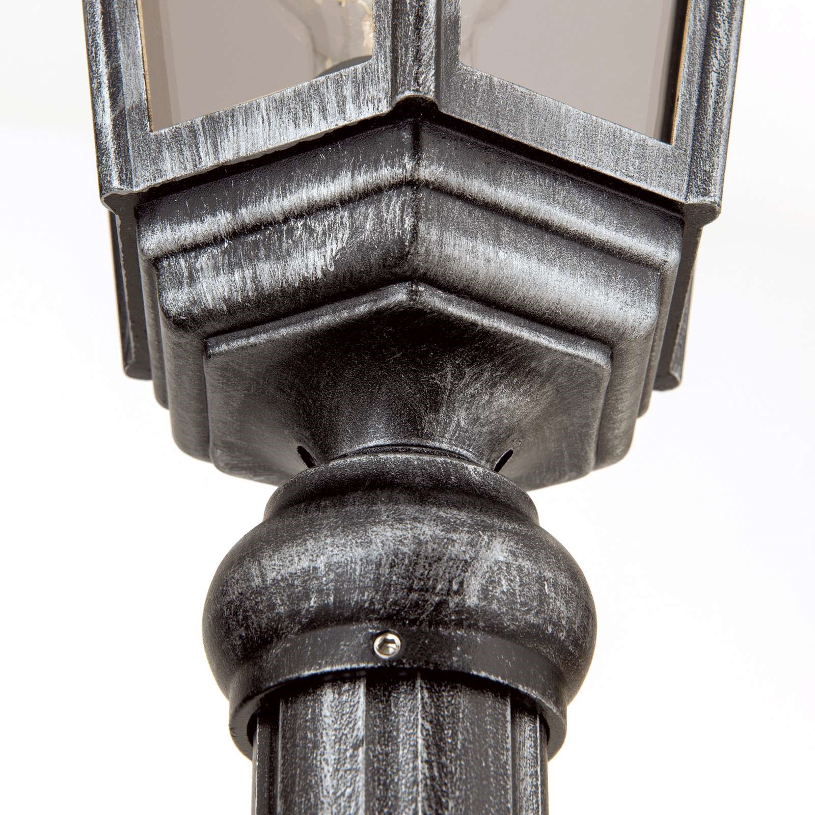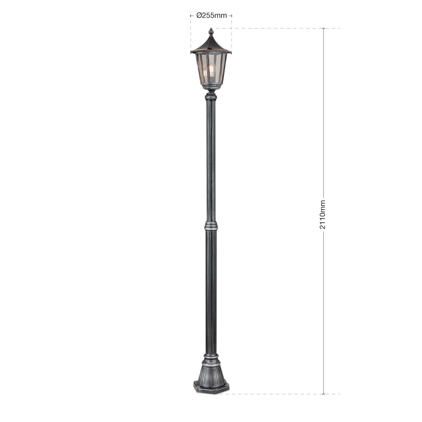 Die im Design klassisch antike Aussenleuchte Gastronomie 211cm gehört zu unserer Leuchtenserie Ischgl. Gefertigt aus langlebigen Materialien, trotzt unsere Aussenleuchte den Elementen und bietet eine zuverlässige Leistung bei jedem Wetter. Die stilvolle Außenbeleuchtung wird aus Siluminguss hergestellt, einer besonders widerstandsfähigen Aluminiumgusslegierung aus Aluguss in Verbindung mit Silicium. Silicium wird z.B. auch im KfZ- und Flugzeugbau als Material verwendet. Die solide Aussenleuchte Gastronomie ist insgesamt 211 cm hoch. Die Laternenhaube zeigt eine Breite von 25,5 Zentimetern. Die 6 Fenstereinsätze der Laterne werden aus stilvollem Rauchglas gefertigt. Die antike Gartenleuchte Ischgl wird hier mit einer E 27-Lampenfassung angeboten. Sie bestücken die stilvolle Mastleuchte mit Leuchtmitteln bis 100 Watt Leistung. Wir empfehlenin hinblick auf Energieeffizienz und Umwelt langlebige LED-Leuchtmittel. Selbstverständlich können auch ebenso Energiesparlampen verwendet werden. Leuchtmittel sind bei Lieferung nicht enthalten. Tipp: moderne Retrolampen verschönern das äußere Erscheinungsbild mit ihrem rundförmigen Glaskörper nochmal . Mittlerweile sind auch Retrolampen als LED-Variante im Handel erhältlich. Die antike Gartenleuchte 211cm ist dimmbar.
