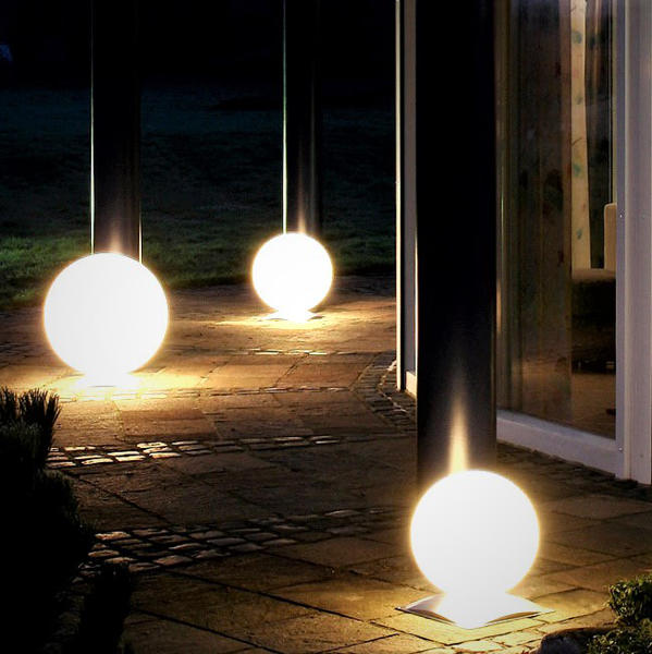 Die Aussenleuchte Gastronomie 50cm im modernen Design besteht aus einem hochwertigen Edelstahlfuß aus feinstem mattiertem Edelstahl und einer im Durchmesser 50 cm großen Leuchtenhaube aus reinweißem Kunststoff, welcher immun gegen Vergilbung und Versprödung ist. Der Edelstahlfuß verleiht der Kugelleuchte nicht nur eine moderne Optik, sondern sorgt auch für eine hohe Stabilität und Witterungsbeständigkeit. Die leicht strukturierte satinierte Oberfläche der Kugelhaube ist pflegeleicht, kratzunempfindlich, schlagfest und UV-stabil. Der Leuchtenkörper ist in einem eleganten weißen Satin-Finish gehalten und passt mit seinem zeitlos bis modernem Design perfekt zu verschiedenen Architekturstilen- von klassisch bis modern. Die Aussenleuchte Gastronomie 50cm eignet sich zur Inszenierung von Beeten, zur Beleuchtung des Eingangsbereiches oder auch als dekorative Außenbeleuchtung im Terrassenbereich. Platzieren Sie die Kugelleuchte dank ihres quadratischen Fußes ortsfest auf Treppenabsätzen, Mauern oder auf Zaunpfählen. Mit der Schutzart von IP 45 ist diese Leuchte gegen Spritzwasser und Staub geschützt und eignet sich somit auch perfekt als Beleuchtung für den Außenbereich.