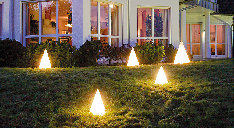 Die Aussenleuchte LED 36cm erzeugt ein blendfreies, stimmungsvolles und natürliches Licht. Die Gartenleuchte mit LED Modell Pyramide entspricht den CE-Richtlinien und ist mit der Schutzart IP 54 ausgestattet. Die LED-Aussenleuchte ist dabei sowohl gegen Seewasser als auch chlorhaltiges Schwimmbadwasser beständig. Der Hersteller der weißfarbenen Gartenleuchte verwendet bei der Montage ausschließlich witterungsresistente Edelstahlschrauben. Die Aussenleuchte LED wurde in der Kategorie Qualität und Design bereits mit dem Plus X Award ausgezeichnet. Die hochwertig verarbeitete Gartenbeleuchtung ist aufgrund ihrer Form und den klaren Linien ein Hingucker. Die Pyramidenleuchte ist auch als Akku-Version für den mobilen Einsatz erhältlich. Die stilvolle Aussenleuchte wirkt insbesondere in Kombination mehrerer Leuchten in verschiedenen Größen. Kombinieren Sie die Leuchte doch als Idee mit dem größeren Leuchtenmodell der Serie, der Gartenleuchte LED 54cm. Die Pyramidenleuchte wird mit 5 Meter Zuleitung und einem Stecker mit Dichtlippe geliefert.