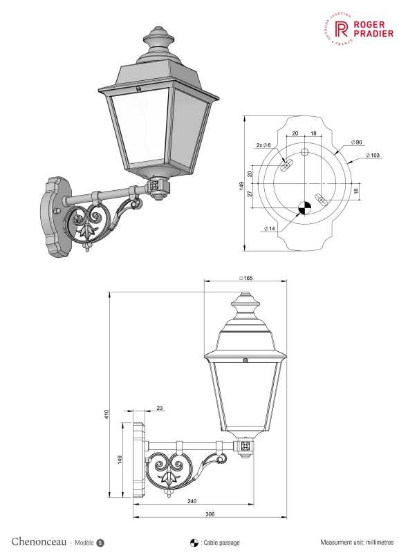 Weitere Leuchtenarten wie eine Outdoor-Hängeleuchte, Sockelleuchten und Wegeleuchte runden das Leuchtensortiment der Modellserie Chenonceau ab. Suchen Sie eine Eckleuchte für Ihre Hausecke/ Außenecke? Sie erhalten für die Wandlaterne optional ein passendes Eck-Element zur Befestigung an einer Haus-Außenecke. Wählen Sie die Zusatzoption einfach während des Bestellvorganges aus. Wir empfehlen Ihnen alternativ auch die kleine Außenwandlaterne mit abwärts gerichteter Laternenhaube. Diese wäre ebenfalls als Ecklampe bestellbar. Alle Leuchten des Herstellers Roger Pradier verlassen die Manufaktur mit einer zusätzlichen technischen Garantie von 3 Jahren. Befestigungsmaterial für die Wandmontage ist bei der Lieferung inklusive.