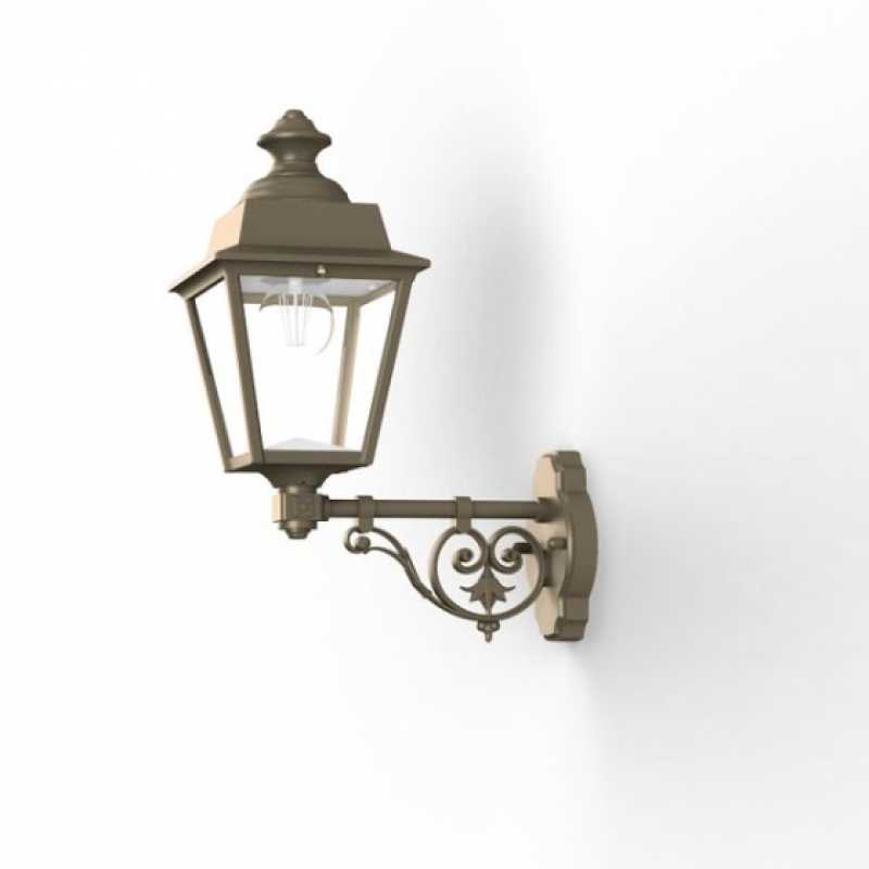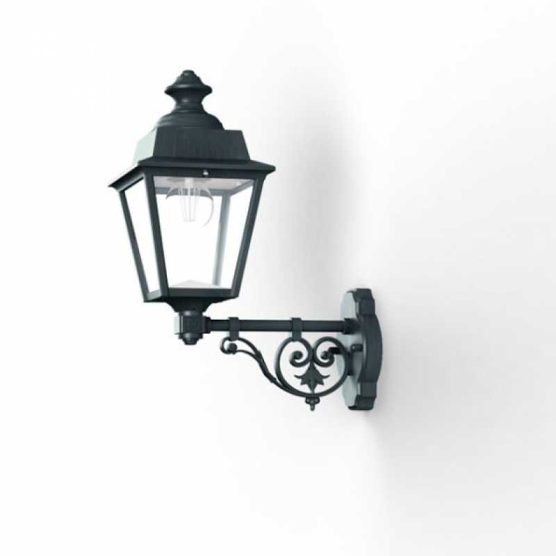 Die im Design klassische Aussenwandlaterne stehend aus unserer Leuchtenserie Chenonceau eignet sich sehr gut als Außenbeleuchtung für eine Jugendstilvilla, Landhäuser, Gehöfte aber auch als stilvolle Außenbeleuchtung im Kontrast zu moderner Architektur. Die stilistisch klassische Außenleuchte ist von ihren Maßen 41 cm hoch, lediglich 16,5 cm breit und mit dem dekorativem Wandarm insgesamt 30,6 cm tief. Die stilvolle Wandleuchte Chenonceau entspricht der Schutzart IP 44 und ist damit allseitig spritzwasser geschützt und regenfest. Der Leuchtenarm mit seinen zahlreichen Verzierungen, das vierseitige Leuchtendach mit verschiedenen geometrischen Formen sowie die sich nach unten etwas verjüngende Laternenform lassen die Außenwandbeleuchtung mit einem ganz eigenem Charme erstrahlen. Die Aussenwandlaterne stehend ist in verschiedenen Farben erhältlich. Es stehen Ihnen bis zu 8 verschiedene Farben/RAL-Farben in der Auswahl zur Verfügung. Wählen Sie bei der hochwertigen französischen Außenwandleuchte zwischen weiß beschichtetem Aluminium oder den Farben tiefschwarz (RAL 9005), seidengrau (RAL 7044), tannengrün (RAL 6009), sandsteinfarben, alt-rustikal oder grün-Patina oder gold-Patina. Weitere Farben werden gern auf Anfrage gefertigt. Der französische Hersteller gibt ab Werk 25 Jahre Antikorrosionsgarantie* auf das beschichtete Aluminium. Ein perfektes Design gepaart mit absoluter Funktionalität, dafür steht die Aussenwandlaterne stehend Modell Chenonceau. Die Designer-Wandlaterne ist hochwertig verarbeitet und verzaubert Ihren Hauseingang oder Fassaden von Nebengelassen mit den entsprechenden Leuchtmitteln (mit warmweißem Licht für eine wohlige Lichtatmosphäre) mit einem tollen Lichtambiente. Die dekorative Hausbeleuchtung wird mit einer E 27-Lampenfassung geliefert. Sie bestücken die Aussenwandlaterne stehend mit Leuchtmitteln bis zu 75 Watt Leistung. Leuchtmittel sind bei der Lieferung nicht enthalten. Die Wandmanschette ist von ihren Maßen 10,3 cm breit und 14,9 cm hoch.