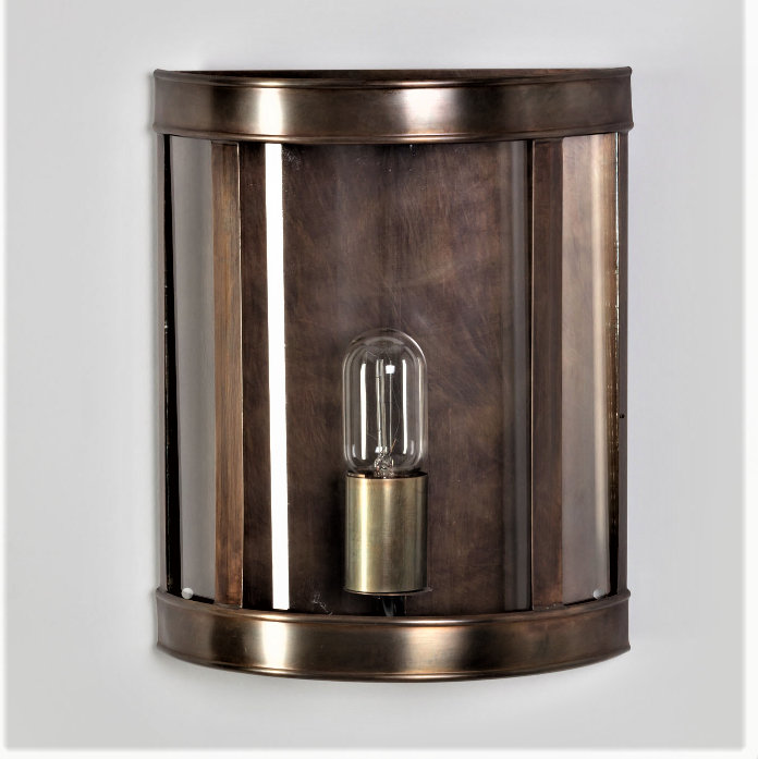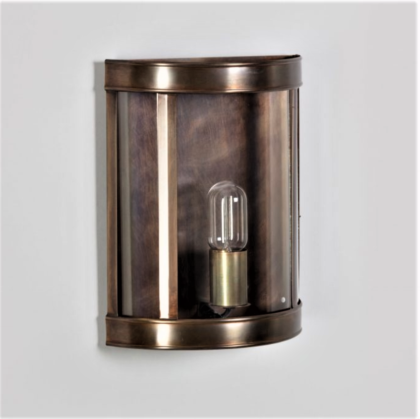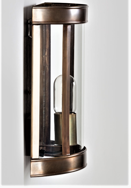 Die Aussenwandleuchte Messing aus der Leuchtenkollektion Monceau aus dem Hause Lumart ist eine edel erscheinende Wandlampe für den Außenbereich, Eingangsbereich oder auch andere geschützte Fassadenbereiche, wo Funktionalität und Eleganz im Einklang stehen sollen. Das edle Finish dieser modernen Wandleuchte aus Messing und Echtglas passt sehr gut zu moderner Architektur, lässt sich aber auch mit antiken Elementen gut kombinieren. Die halbrunde Außenwandlampe Vintage mit säurepatinierter Oberfläche ist daher für viele verschiedene Stilrichtungen einsetzbar. Die Aussenwandleuchte Messing der Serie Monceau entspricht der Schutzklasse IP 23 und sollte daher in etwas geschützten Außenbereichen montiert werden. Die Leuchtenhöhe beträgt 31 cm. Die Aussenleuchte ist 25 cm breit und 12 cm tief. Die Leuchte entspricht der Schutzklasse 1.
