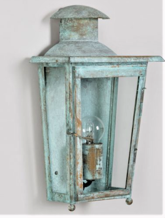 Die Aussenwandleuchte grün-antik 34cm aus der französischen Leuchtenserie Petit Paris ist ein toller Blickfang. Die vom Design antik-nostalgische Wandleuchte mit Grünspan-Optik (Verdi-gris) benötigt dabei nicht viel Platz. Die stilvolle Außenleuchte Modell Petit Paris (was übersetzt "Kleines Paris" bedeutet) ist 34 cm hoch, 20 cm breit und ganze 12 cm tief und eignet sich insbesondere für den architektonisch modernen Landhausstil. Die Aussenwandleuchte grün-antik 34cm passt auch für Fassaden mit wenig Platz und lässt sich als stilvolle Lichtquelle im Hauseingangsbereich, als Terrassenbeleuchtung oder auch als edle Aussenbeleuchtung an Nebengebäuden platzieren. Die antike Aussenbeleuchtung mit Grünspan-Optik ist für den Außenbereich gut geeignet, sollte aber mit der Schutzklasse IP 23 etwas geschützt platziert werden, z.B. unter einem Dachkasten, Dachvorständen oder anderen Vorbauten oder Überdachungen.