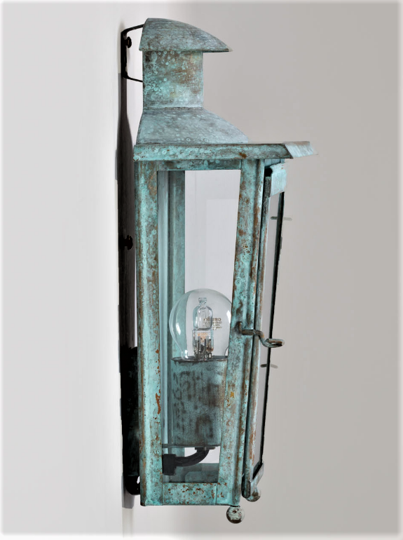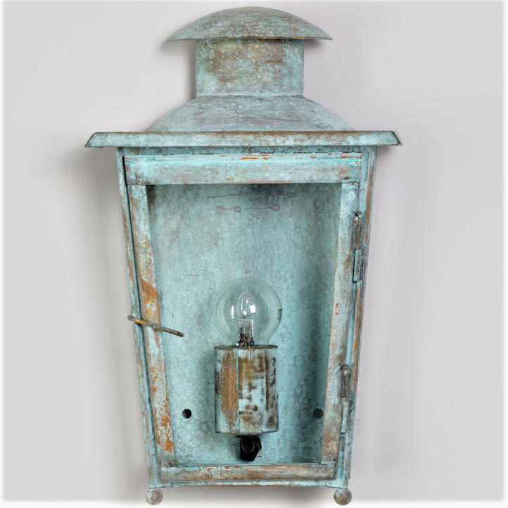 Die Aussenwandleuchte grün-antik 34cm verfügt über eine Lampenfassung der Größe E 27 und wird mit Leuchtmitteln bis maximal 60 Watt Leistung bestückt. Leuchtmittel sind bei der Lieferung nicht enthalten. Moderne Retro-Leuchtmittel passen optisch gut zu dieser klassisch-antiken Wandlampe. Die Aussenwandleuchte grün-antik entspricht der Schutzklasse 1. Die Gartenleuchte aus dem Hause Lumart ist eine handgefertigte Aussenleuchte klassisch und zugleich modern im exklusiven Design. Die hochwertige Unikatsleuchte erhalten Sie auch in anderen Finishes, z.B. in Nickel oder auch als Messing-Aussenleuchte. Sprechen Sie uns gern darauf an. Schauen Sie sich das gleiche Leuchtenmodell mal mit anderem Finish an, unsere Nickel-Aussenleuchte klassisch.