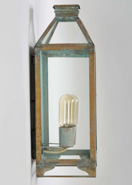 Die Außenwandleuchte grün-antik aus der Kollektion Aix wirkt als Wandleuchte im Innen- als auch Außenbereich sehr transparent. Die rustikale Wandleuchte vereint ein antikes Design mit Modernität und einem Hauch von französischem Charme. Die Außenwandleuchte grün-antik zeigt klare Linien und zieht mit ihren besonderen Farben und der Grünspan-Patina sicherlich so manche Blicke auf sich. Die Wandaussenleuchte stammt sowohl vom Design als auch der Herstellung aus einem französischem Atelier. Die antike Wandlampe im Vintage-Style ist 50 cm hoch, 26 cm breit und hat eine Tiefe von 19 cm. Die stilvolle Messing-Wandlampe Aix wird mit Echtglas hergestellt.