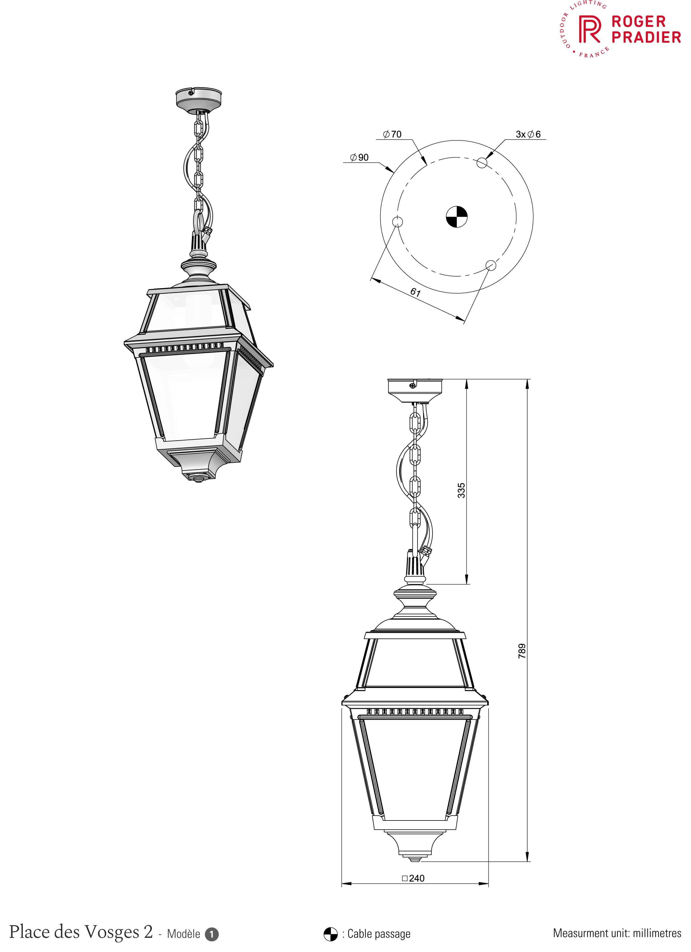 Alle Leuchten des Herstellers Roger Pradier verlassen die Manufaktur mit einer zusätzlichen technischen Garantie von 3 Jahren. Weitere Leuchtenarten wie verschiedene Wandleuchten, Sockelleuchten, Wegeleuchten, Mastleuchte sowie auch ein dreiflammiger Kandelaber runden das Leuchtensortiment der Modellserie Vogese 2 ab. Befestigungsmaterial für die Deckenmontage ist bei Lieferung der Design Aussenleuchte hängend inklusive. Die Deckenmanschette zur Befestigung an der Decke ist im Durchmesser 9 Zentimeter groß. Wir empfehlen Ihnen dazu passend zum Beispiel als Hauseingangsbeleuchtung auch die exklusive Aussenleuchte mit Bischofsstab.