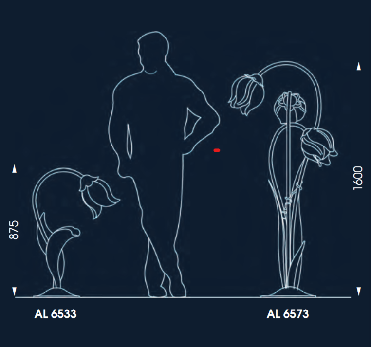 Die kreative Designer Aussenleuchte 1 ist ein tolles Highlight für Ihre Rasenflächen und Beetanlagen. Trotzen Sie den Jahreszeiten und bringen Sie ganzjährig Ihre Beetanlagen und begrünte Außenbereiche zum Leuchten. Das individuelle Blumendesign bringt im klassischen Look Abwechslung in jede Außenanlage. Die Oberfläche in der Farbe Terra passt perfekt zu unterschiedlichen Architekturstilen - vom geklinkerten Landhausstil bis zum farbig verputzten Haus; unsere Leuchtenserie Fleur ist jedem Falle ein toller Eyecatcher in Vorgärten, auf Rasenflächen oder auch entlang oder mittendrin in Ihren Blumenbeeten. Die Designer Aussenleuchte 1 wird hier einflammig angeboten, gibt es aber auch mit zwei oder auch drei Lichterkelchen und kann natürlich prima entsprechend kombiniert werden. Die in echter Handarbeit gefertigte außergewöhnliche Gartenleuchte gehört zu unserer Leuchtenserie Fleur. Die stilvolle Beetleuchte wird für eine besondere Langlebigkeit aus feuerverzinktem Stahl hergestellt. Dabei werden in der deutschen Leuchtenmanufaktur ausschließlich hochwertige Materialien verarbeitet. Die verwendete E27-Lampenfassung wird mit Leuchtmitteln bis 100 Watt Leistung bestückt. Wir empfehlen als Lichtfarbe warmweißes bis gelbliches Licht (2300 bis 3000 Kelvin), um die anheimelnde Außenwirkung dieser dekorativen Gartenbeleuchtung nochmal zu unterstreichen. Leuchtmittel sind bei der Lieferung nicht enthalten. Die Designer Aussenleuchte hat eine Höhe von 87,5 Zentimetern und eine Breite von 59 Zentimetern. Die außergewöhnliche Gartenleuchte besticht mit der authentischen Oberfläche Terra im klassisch antiken Design. Die originelle Gartenleuchte gibt es auch in weiteren Finishes wie Eisen natur, Taverna, schwarz, schwarz-silber, Patina, Alt-Kupfer, Alt-Bronze, grün-antik und Steampunk. Die einflammige Tulpenleuchte hat ein Eigengewicht von beachtlichen 12 kg. Schauen Sie doch als Inspiration mal nach unserer ebenso kreativen Designer Aussenleuchte Landhausstil, einer Wegeleuchte mit dekorativer Laterne.