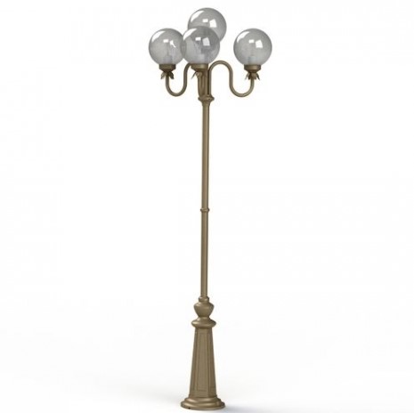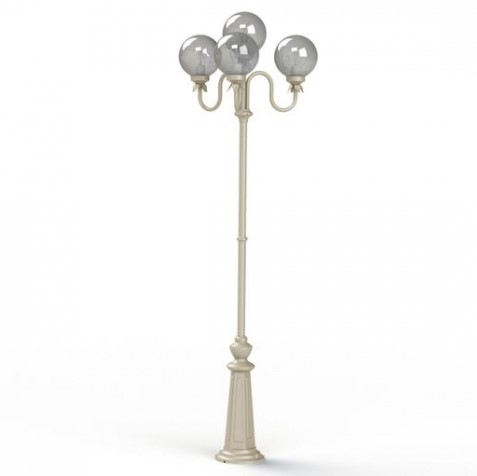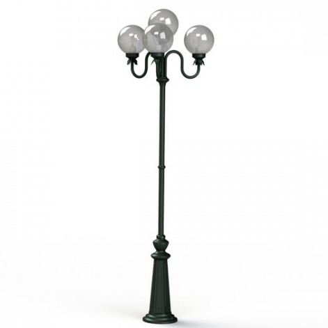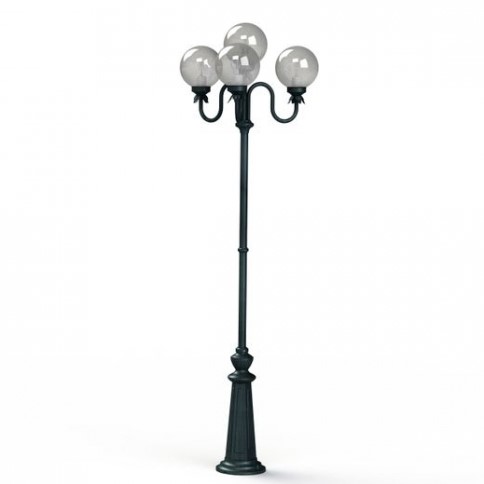 Die lichtstarke Designer Aussenleuchte 4-flammig ist von ihren Maßen 206 cm hoch und 64,6 cm breit. Der stilvolle Kugel- Kandelaber aus unserer Leuchtenserie Moon wird in einer französischen Manufaktur sorgfältig aus hochwertigen und langlebigen Materialien hergestellt. Der Mast besteht für die erforderliche Standfestigkeit aus Stahl. Die Verteilerarme werden aus Aluminium gefertigt. Die klassische Designerleuchte ist eine Mastleuchte mit rundförmigem Sockelfuß. Dieser ist im Durchmesser 23 cm breit und sorgt damit für die erforderliche Standfestigkeit auf festem Untergrund. Der sich von unten nach oben verjüngende Mastfuß zeigt verschiedene zierende Elemente mit harmonischer Linienführung. Die Rauchglas- Kugelhaube ist im Durchmesser 20 cm groß und besteht aus hochwertigem PMMA. PMMA ist ein besonders witterungsbeständiger und harter Kunststoff mit hoher Brillianz, dazu äußerst schlagzäh und splittersicher. Die Kugelleuchte ist mit einem IK-Grad von 08 besonders stoßfest. Die wetterfeste Designer Aussenleuchte 4-flammig entspricht der Schutzart IP 44 und ist damit allseitig gut vor Regenwasser und Spritzwasser geschützt. Bei der dekorativen Außenbeleuchtung Moon stehen Ihnen verschiedene Farben zur Verfügung. Wählen Sie zwischen tiefschwarz (RAL 9005), weiß, Grün-Patina, sandfarben, sandsteinfarben, dunkelgrün (RAL 6009) und tannengrün. Die klassische Außenbeleuchtung gibt es auch mit opalweißen Kugelhauben.