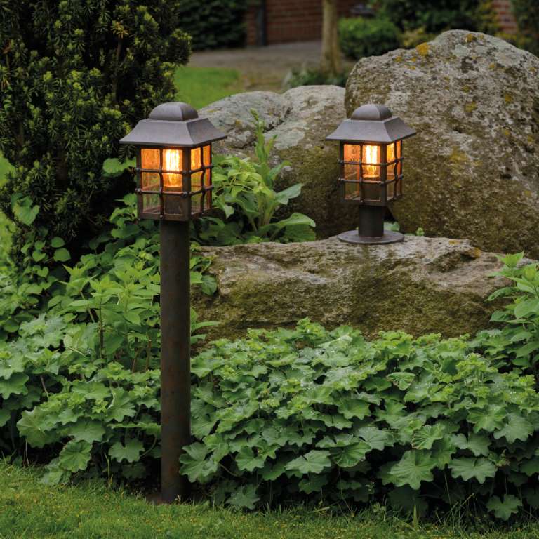 Die im Design klassische Designer Aussenleuchte Landhausstil ist die ideale Außenbeleuchtung für Vorgarten, Wege und Beetanlagen. Einzeln oder auch in einer Reihe aufgestellt ist diese authentische Wegeleuchte unbeleuchtet als auch in Beleuchtung einfach schön anzuschauen. Die vierseitige Laterne mit Gitterverzierungen verleiht Ihrem Außenbereich einen ganz besonderen Charme. Die in echter Handarbeit gefertigte Gartenbeleuchtung gehört zu unserer Leuchtenserie Turin. Die Designer Aussenleuchte Landhausstil hat eine Breite von 21 Zentimetern und eine Höhe von 104 Zentimetern.Die massive Stehleuchte wiegt 11 kg. Die dekorative Pollerleuchte Landhausstil wird für eine besondere Langlebigkeit aus Aluminium und feuerverzinktem Stahl hergestellt. Dabei werden in der deutschen Leuchtenmanufaktur ausschließlich hochwertige Materialien verarbeitet. Das gitterförmige Muster als auch die insgesamt vierseitige Formengebung geben dieser Laternenleuchte in Verbindung mit dem Glas Antika ein eher gediegenes Ambiente. Die Designer Aussenleuchte Landhausstil ist alternativ auch mit Klarglas erhältlich (auf Anfrage). Die Modellserie Turin bietet dazu ergänzend perfekt abgestimmt auch eine dreiseitige Außenwandleuchte zur direkten rückseitigen Anbringung an der Hauswand, eine am massivem Haken hängende Wandlaterne oder eine Sockellaterne. Die aufgesetzten zierenden Streben an der Laternenhaube ergeben dabei optisch pro Seite sechs Quadrate, die durch das antike Echtglas ein warmes Licht durchlassen. Die verwendete E27-Lampenfassung wird mit Leuchtmitteln bis 100 Watt Leistung bestückt. Wir empfehlen als Lichtfarbe warmweißes bis gelbliches Licht (2300 bis 3000 Kelvin), um die anheimelnde Außenwirkung dieser dekorativen Stehleuchte im klassischen Landhausstil nochmal zu unterstreichen. Leuchtmittel sind bei der Lieferung nicht enthalten. Die stilvolle Außenbeleuchtung Turin besticht mit ihrem authentischen Vintage-Look als Oberfläche. Die Designer Aussenleuchte Landhausstil gibt es auch in weiteren Finishes wie Terra, Eisen natur, Taverna, schwarz, schwarz-silber, Patina, Alt-Kupfer, Alt-Bronze, grün-antik und Steampunk. Dazu perfekt passend empfehlen wir auch aus der gleichen Leuchtenserie die klassische Aussenwandleuchte Landhausstil.