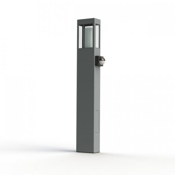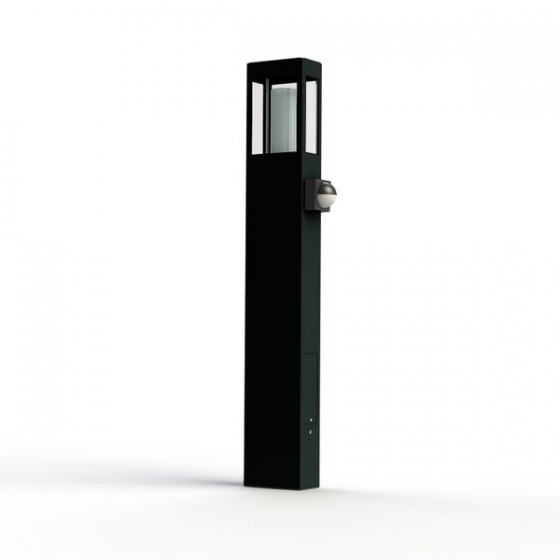 Setzen Sie mit der stilistisch modernen Designer Aussenleuchte mit Bewegungsmelder aus unserer Leuchtenserie Brick dekorative Lichtakzente in Ihrem Außenbereich. Die etwas höhere Gartenbeleuchtung ist quaderförmig und überzeugt mit ihrer stylischen Geradlinigkeit. Die hochwertige Pollerleuchte ist von den Maßen 110 cm hoch, 17 cm breit und 10 cm tief. Bringen Sie mit der Designerleuchte Modell Brick Licht in Ihren Vorgarten, beleuchten Sie abends Zugangswege, Ihre Terrasse oder setzen Sie dunkle Gartenecken stilvoll in Szene. Schließlich wertet eine hochwertige Außenbeleuchtung Ihre Immobilie insbesondere in der Dunkelheit auf und sorgt natürlich dafür, daß Sie sich in Beleuchtung auch im Dunkeln draußen sicher bewegen können. Die eckige Gartenleuchte ist seitlich mit einem Bewegungsmelder ausgestattet. Der maximale Bewegungsradius beträgt hierbei 5 Meter. Die Sensibilität ist individuell vor Ort einstellbar. Ebenso bestimmen Sie die ausgelöste Lichtbrenndauer von einer Sekunde bis zu 20 Minuten. Der Bewegungsmelder lässt sich technisch bei Bedarf auch abnehmen.