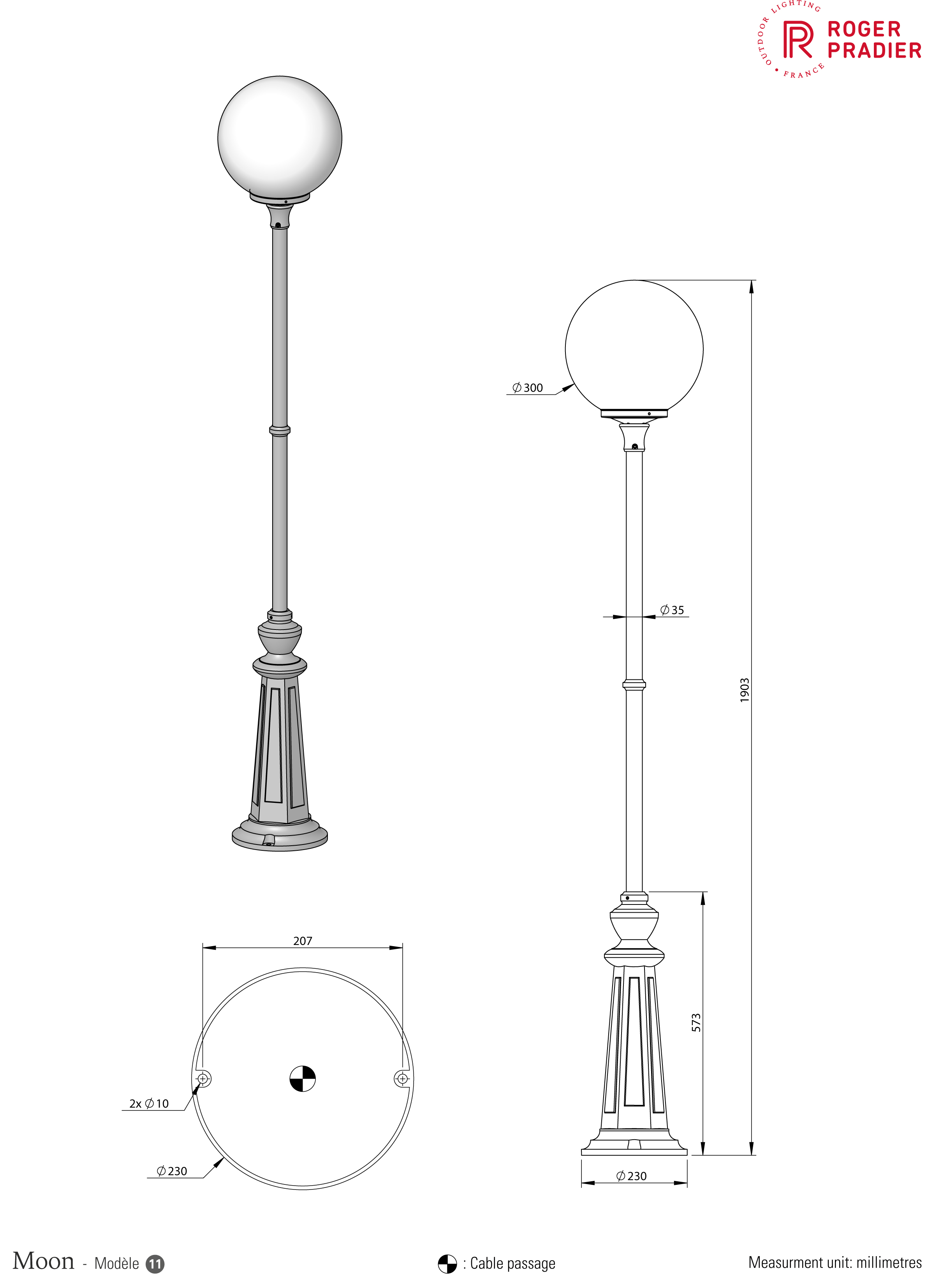 Alle Leuchten des Herstellers Roger Pradier verlassen die Manufaktur mit einer zusätzlichen technischen Garantie von 3 Jahren. Der französische Hersteller gibt ab Werk auf das beschichtete Aluminium eine 25-jährige Anti-Korrosionsgarantie*. Weitere Leuchtenarten wie eine Wand-Kugelleuchte aufwärts oder abwärts gerichtet, weitere Sockelleuchten, Mastleuchten und verschiedene Mastleuchten- auch mehrflammig, runden das Leuchtensortiment der Serie Moon ab. Befestigungsmaterial für die Montage ist bei der Lieferung inklusive. Die Leuchte gibt es bei dem Hersteller alternativ auch in etwas niedrigerer Ausführung mit seitlich montiertem Bewegungsmelder. Schauen Sie für weitere Details dazu einfach mal unter dem folgenden Link Kugel-Aussenleuchte mit Bewegungsmelder.