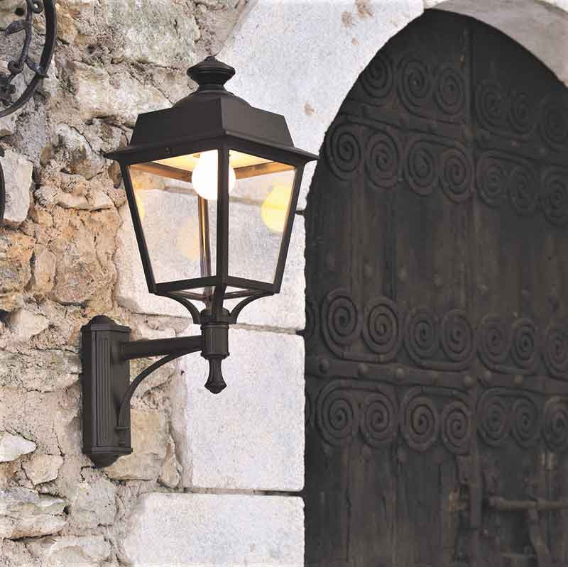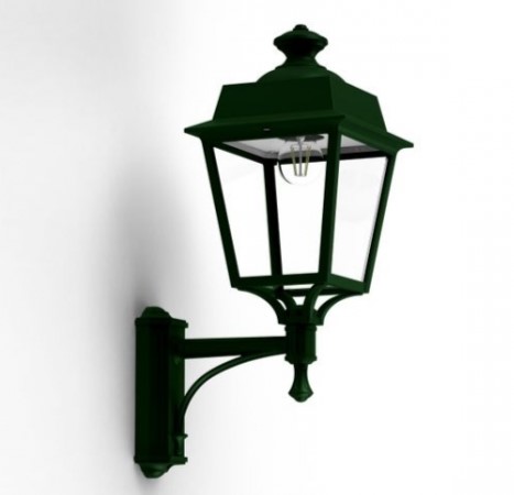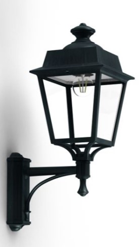 Die stilvolle Eckleuchte klassisch aus unserer Leuchtenserie Modell Vogese 1 ist eine vierseitige Wandlaterne für Außenecken, die würdevoll aufrecht auf einem Wandarm montiert ist. Die Befestigung an der Hausecke/Außenecke erfolgt mithilfe des dazu passenden Eck-Befestigungselements. Die Wandmanschette des Wandarms ist 7,7 cm breit und 22,2 cm lang. Die wetterfeste Außenwandleuchte ist hochwertig verarbeitet und von ihren Maßen 57,4 cm hoch, 22 cm breit und ganze 32,7 cm tief. Die qualitativ hochwertige Eckleuchte klassisch wird aus Aluminium gefertigt. Bei der idekorativen Außenwandleuchte stehen Ihnen je nach Geschmack und örtlichen Vorgaben bis zu 8 verschiedene Farben/RAL-Farben zur Verfügung. Wählen Sie bei der dekorativen Außenleuchte über Eck zwischen tiefschwarz (RAL 9005), weiß, schiefergrau, tannengrün (RAL 6009), sandsteinfarben, alt-rustikal (rostbraun), Grün-Patina oder Gold-Patina. Der französische Hersteller gibt ab Werk auf das beschichtete Aluminium eine 25-jährige Anti-Korrosionsgarantie*. Die vier Fenstereinsätze werden aus klarem oder hochwertigem opalfarbenen PMMA gefertigt, einem Kunststoff, der sich insbesondere durch seine Brillianz und Kratzfestigkeit auszeichnet. Wer es also absolut blendfrei benötigt oder bevorzugt, sollte sich für die Variante PMMA opalfarben entscheiden. Die hochwertig verarbeitete Eckleuchte klassisch Modell Vogese entspricht der Schutzart IP 65 sowie der Schutzklasse 1.