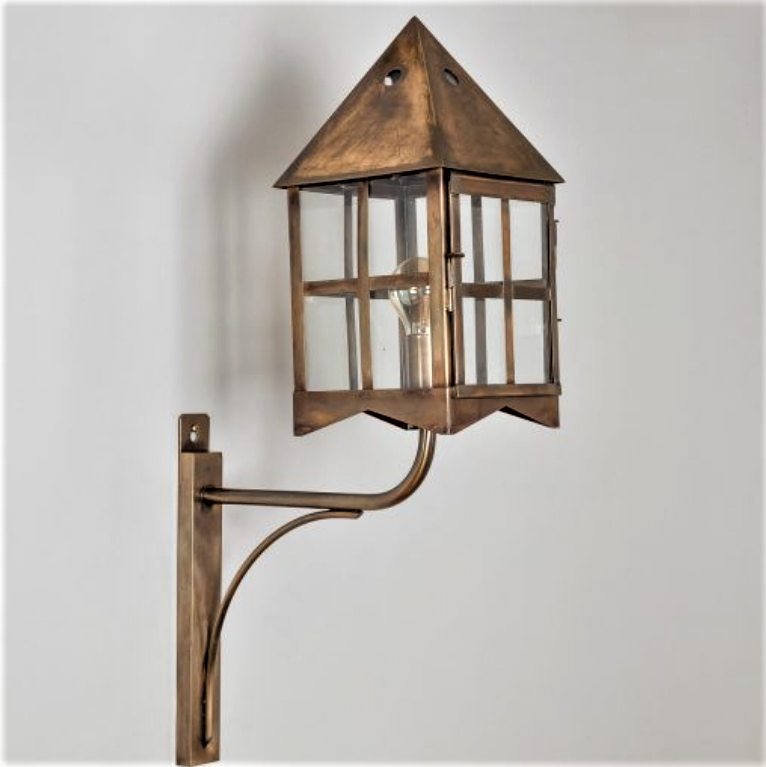 Sie suchen eine exklusive Aussenleuchte in Messing? Die exklusive Aussenleuchte Messing gehört zur Laternenkollektion Pyramide aus dem Hause Lumart, einer exklusiven französischen Leuchtenmanufaktur in der Nähe von Paris. Die Wandleuchte aus Messing mit edlem säurepatiniertem Messing-Finish überzeugt mit ihrem verspielten nostalgisch antikem Design, welches ein wenig an das frühere Mittelalter erinnert. Die exklusive Aussenleuchte Messing ist mit der Schutzart IP 23 für den etwas geschützeren Außenbereich, z.B. unter einem Dachkasten, bestens geeignet. Die sowohl von der Form als auch dem verwendetem Material/Finish außergewöhnliche Aussenwandleuchte ist bei uns auch als Wandleuchte-ohne Wandarm- oder als perfekte Ergänzung Ihrer Außenbeleuchtung als Sockelleuchte/ Gartenleuchte erhältlich. Der Garten und Vorgartenbereich ist quasi die Visitenkarte Ihrer Immobilie und möchte mit Bedacht ausgewählt sein.