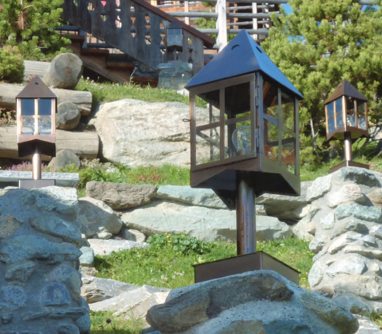 Sie suchen eine exklusive Aussenbeleuchtung in Messing? Die Gartenbeleuchtung Landhausstil 40cm gehört zu unserer französischen Leuchtenserie Pyramide aus einer exklusiven Leuchtenmanufaktur in der Nähe von Paris. Die pyramidenförmige Sockelleuchte wird aus Messing hergestellt und mit einem edlem säurepatiniertem Messing-Finish als Obnerfläche. Die vom Stil nostalgisch-antike Gartenbeleuchtung erinnert ein wenig an das frühere Mittelalter. Die Gartenbeleuchtung Landhausstil 40cm ist vom Design recht authentisch und wirkt sowohl einzeln plaziert als auch zu mehreren an verschiedenen Standorten, z.B. auch an Hängen, angeordnet. Die sowohl von der Form als auch dem verwendetem Material/Finish außergewöhnliche nostalgische Sockelleuchte ist bei uns auch als Wandleuchte -mit und ohne Wandarm- erhältlich. Die exklusive Gartenleuchte ist ein echter Hingucker.