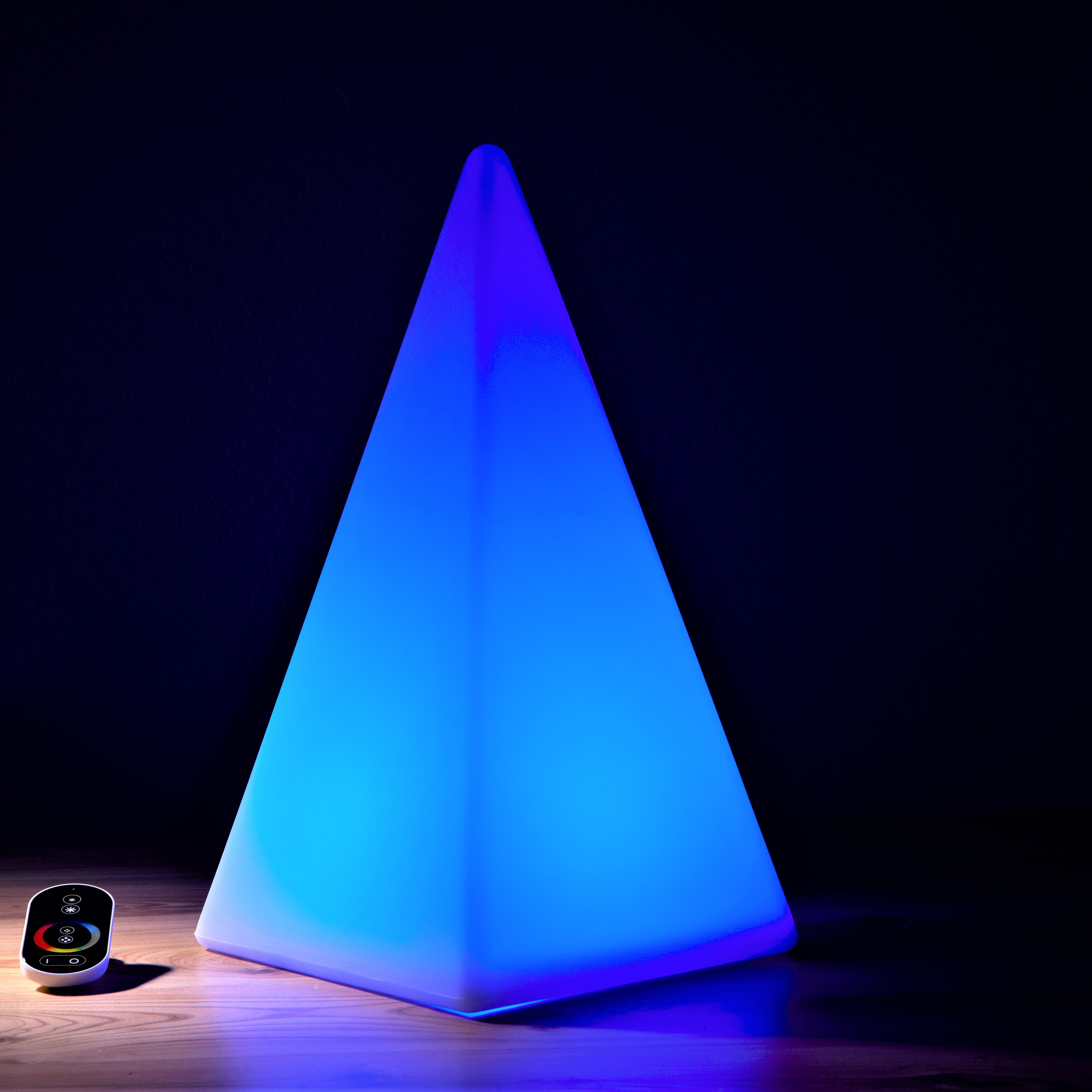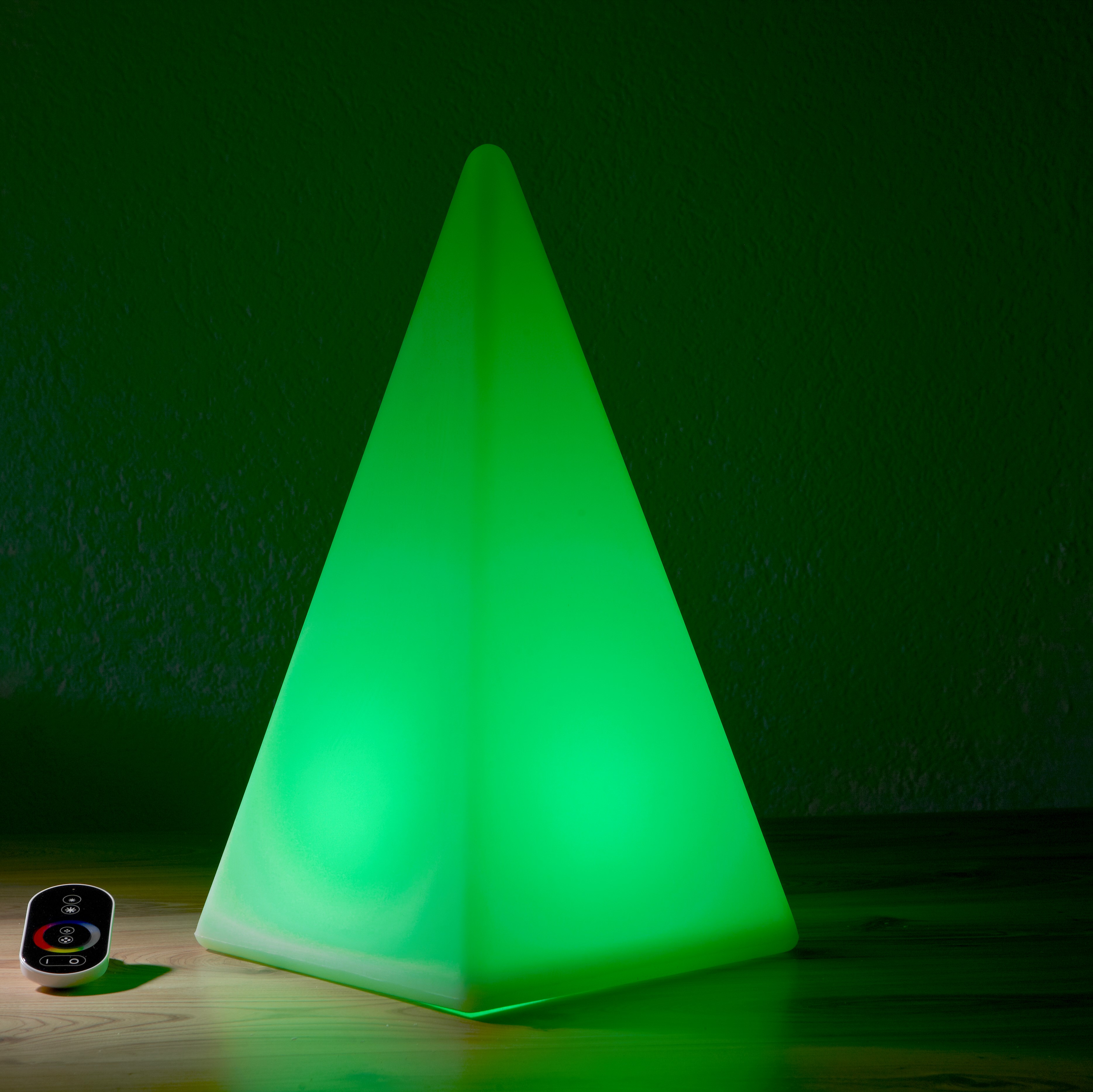 Die hochwertige Gartenleuchte Akku RGB aus unserer Leuchtenserie Pyramide ist 36 cm hoch und misst am quadratischem Boden eine Breite und Länge von 20 x 20 cm. Das Gehäuse besteht bei der dekorativen Außenleuchte aus robustem Polyethylen, ein Material was sich insbesondere aufgrund seiner Kratzunempfindlichkeit und Robustheit bewährt hat. Die ortsveränderliche Außenbeleuchtung sorgt mit ihrer modernen und zugleich klaren Formgebung für Beleuchtung in privaten Gärten, im Terrassenbereich oder größeren Gartenanlagen, auch als punktueller Eyecatcher in Kombination verschiedener Größen. Durch ihre Mobilität können sie den Standort der Pyramiden-Aussenleuchte wechselnden Bedingungen ihrer Umgebung angepassen.