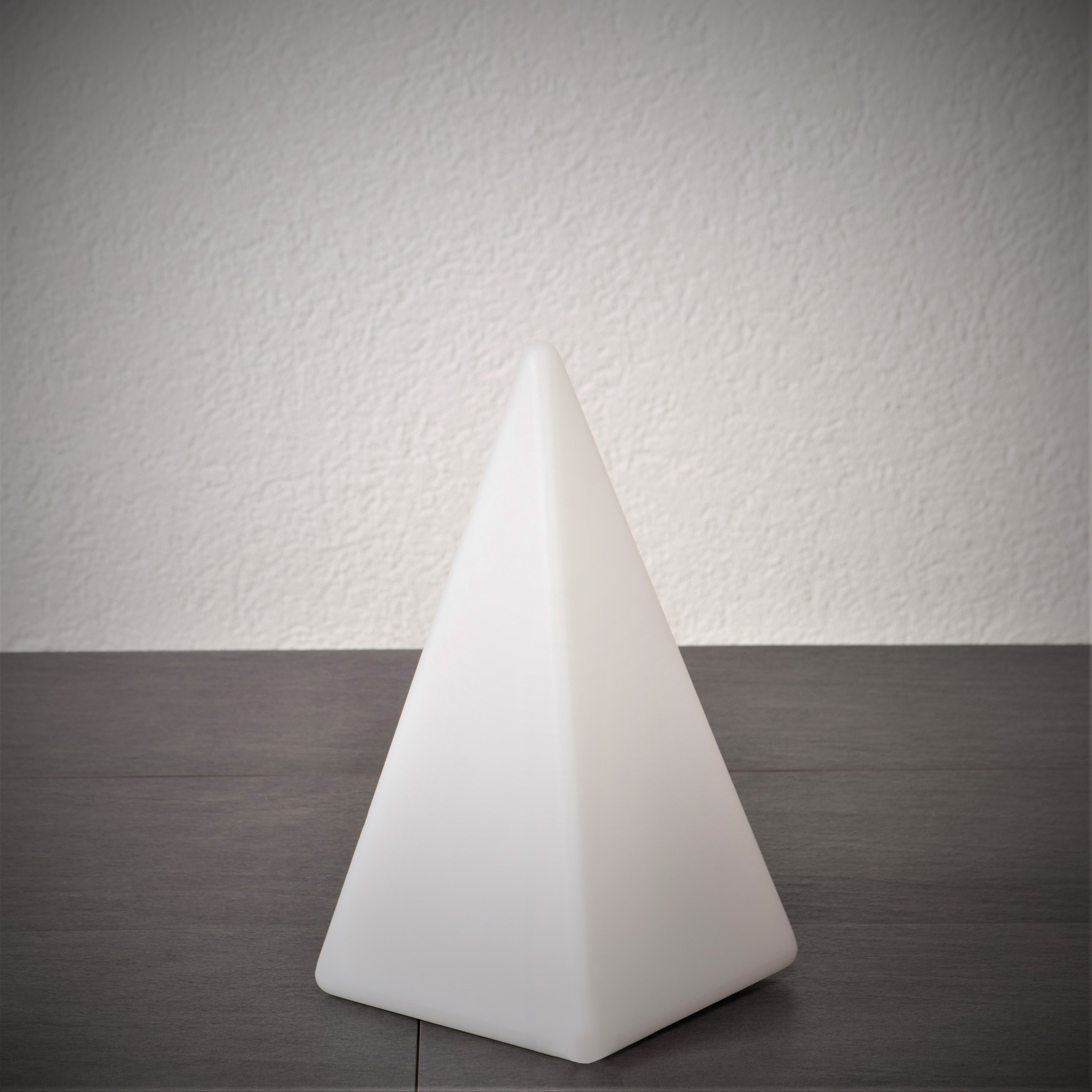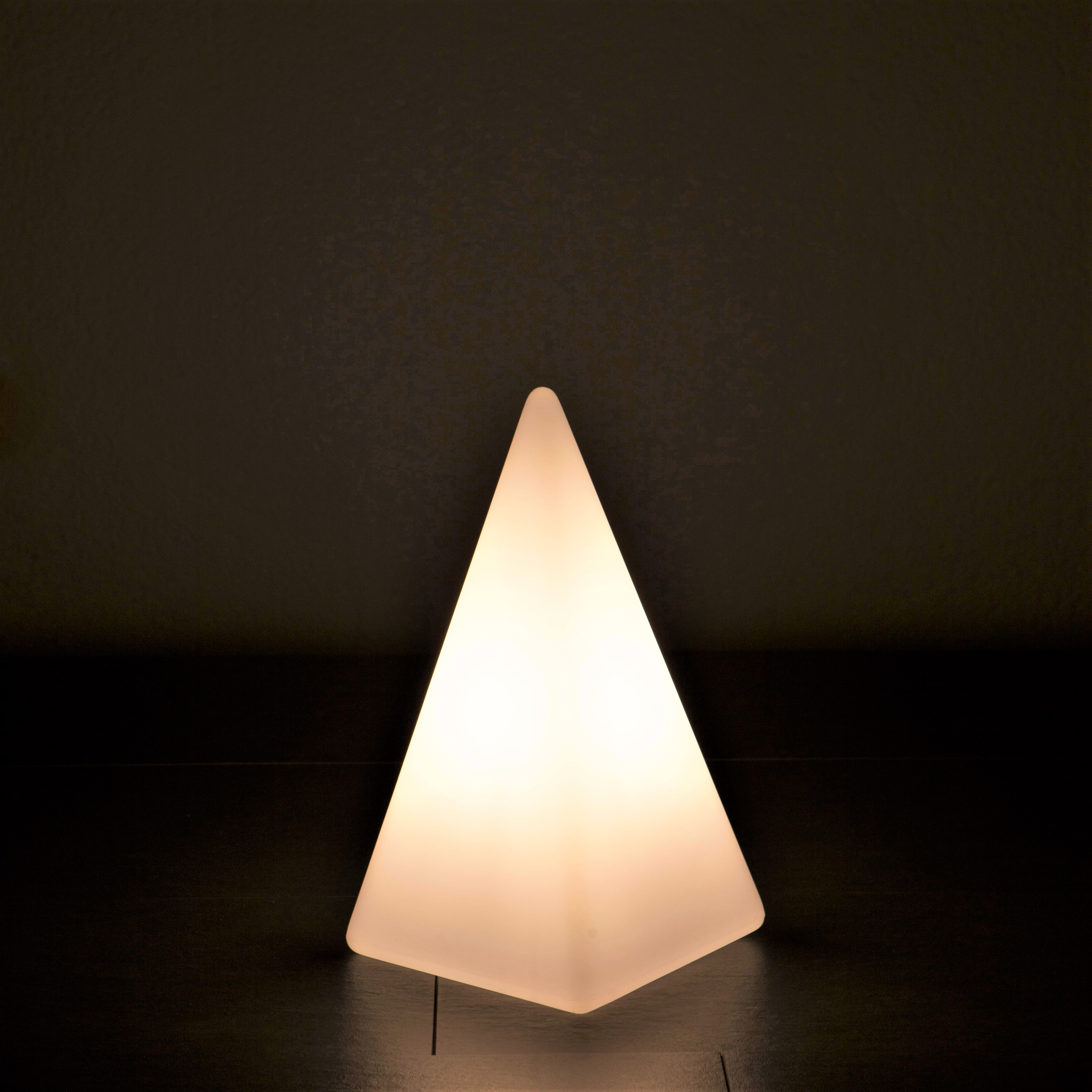 Die hochwertige Gartenleuchte Pyramide ist 36 cm hoch und misst am quadratischem Boden eine Breite und Länge von 20 x 20 cm. Die ortsveränderliche Gartenleuchte Pyramide 36cm sorgt mit ihrer modernen und zugleich klaren Formgebung für Beleuchtung in privaten Gärten, im Terrassenbereich oder Gartenanlagen, auch als punktueller Eyecatcher in Kombination verschiedener Größen. Durch ihre Mobilität können sie den Standort der Pyramiden-Aussenleuchte wechselnden Bedingungen ihrer Umgebung anpassen. Die Gartenleuchte Pyramide spendet ein blendfreies und gleichmäßiges Licht auf Flächen, Wiesen und Wegen im öffentlichen oder privaten Bereich. Sie bestimmen mit der von Ihnen gewählten Lichtfarbe (z.B. 2700 Kelvin für ein stimmungsvolleres warm-weißes Lichtambiente) bei den Leuchtmitteln die entsprechende Lichtwirkung. Leuchtmittel sind bei der Lieferung nicht enthalten. Sie verwenden für die Leuchte Glühlampen, Energiesparlampen oder auch gern LED-Lampen bis 25 Watt Leistung. Die stilvolle Lichtquelle ist CE geprüft und entspricht der Schutzart IP 65. Die moderne Aussenbeleuchtung mit ihrer geometrischen Form ist sowohl gegen Seewasser als auch chlorhaltiges Schwimmbadwasser beständig. Der Korpus der Gartenleuchte Pyramide besteht aus robustem schlagfesten Polyethylen. Die Verwendung von witterungsresistenten Edelstahlschrauben rundet die hochwertige Verarbeitung der weißfarbenen Pyramidenleuchte ab.