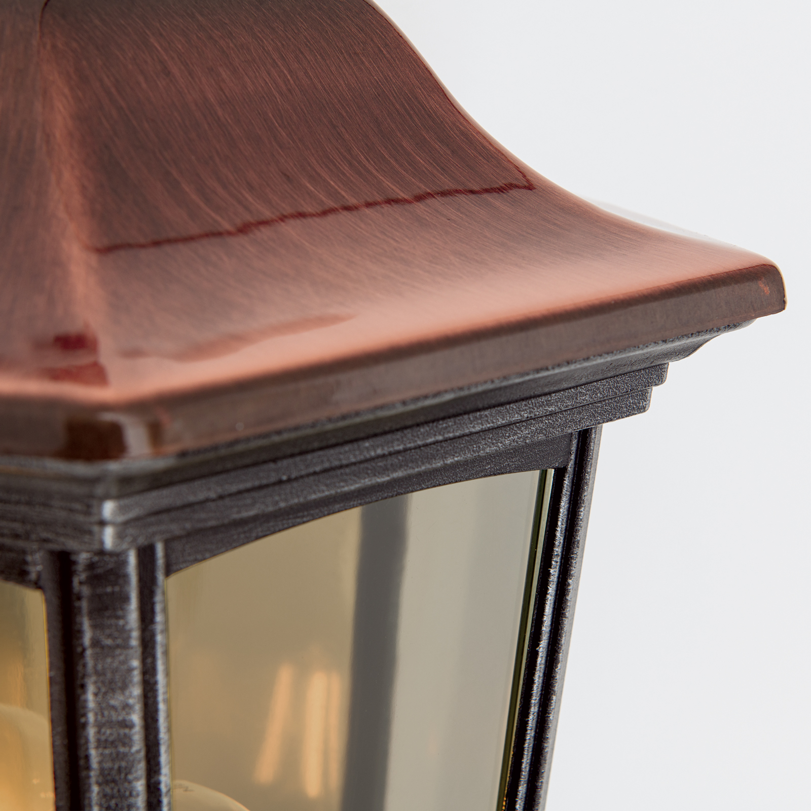 Die im Design klassisch-antike Gastro Wandlampe gehört zu unserer Leuchtenserie Ischgl. Die gusseiserne Außenwandleuchte eignet sich sehr schön als Außenbeleuchtung im Hauseingangsbereich oder auch als Terrassenbeleuchtung sowie auch gern als Beleuchtung für Nebengelasse. Die von den Farben schwarz-silber-kupferfarbene Außenbeleuchtung ist insgesamt 45 Zentimeter hoch. Die Leuchtenhaube ist 25,5 Zentimeter breit. Die dekorative Außenleuchte hat eine Gesamttiefe von 14 Zentimetern. Die stilvolle Wandleuchte für Außen wird aus Siluminguss hergestellt, einer besonders widerstandsfähigen Aluminiumgusslegierung aus Aluguss in Verbindung mit Silicium. Silicium wird z.B. auch im KfZ- und Flugzeugbau als Material verwendet. Das schwarz-kupferfarbene Leuchtendach überzeugt dazu mit seiner extravaganten Form. Die drei Fenstereinsätze der Leuchtenhaube werden bei der dekorativen Outdoor Wandleuchte aus trendigem Rauchglas gefertigt. Rauchglas erfreute sich schon bereits in den sechziger Jahren in der Beleuchtung großer Beliebtheit und besticht optisch in seiner Lichtwirkung mit eher weichen Linien. Die gusseiserne Gastro Außenbeleuchtung kommt von unserem österreichischen Leuchtenhersteller Orion-Leuchten.