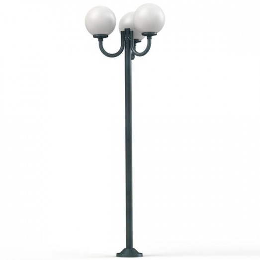 Der wetterfeste Kandelaber 3-flammig Modell Moon ist von seinen Maßen 239 cm hoch und 77,3 cm breit. Die opalweißen Kugelhauben sind im Durchmesser jeweils 30 cm groß und bestehen aus hochwertigem PMMA. PMMA ist ein besonders witterungsbeständiger und harter Kunststoff mit hoher Brillianz, dazu äußerst schlagzäh und splittersicher. Der Mast besteht für die erforderliche Standfestigkeit aus Stahl. Die Verteilerarme werden aus Aluminium gefertigt. Die klassische Designerleuchte ist eine Mastleuchte mit rundförmigem Sockelfuß. Dieser ist im Durchmesser 25 cm breit und sorgt damit für die erforderliche Standfestigkeit auf festem Untergrund. Der sich von unten nach oben verjüngende Mastfuß zeigt verschiedene zierende Elemente mit harmonischer Linienführung. Die große Gartenbeleuchtung ist mit einem IK-Grad von 08 besonders stoßfest. Bei dem dekorativen Kugel Kandelaber Moon stehen Ihnen je nach Bedarf und Geschmack diverse Farben zur Verfügung. Wählen Sie zwischen den Farben tiefschwarz (RAL 9005), weiß, Grün-Patina, sandfarben, sandsteinfarben, dunkelgrün (RAL 6009) und tannengrün.