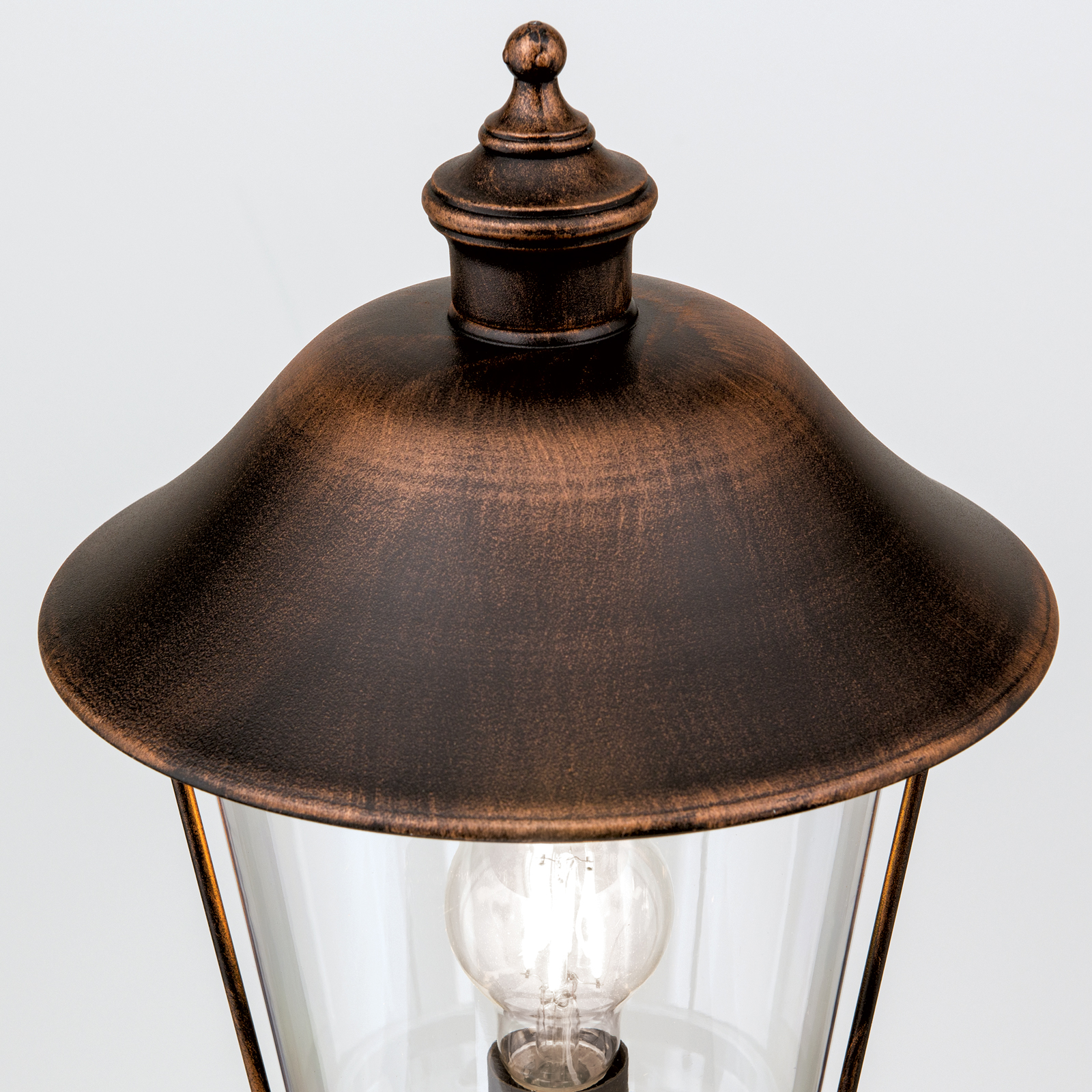 Die vom Stil antik-klassische Sockelleuchte 58cm aus unserer Leuchtenserie Sizilia wirkt mit ihrem schwarz-kupferfarbenen Extérieure. Die dekorative Sockellampe wird aus Siluminguss hergestellt, einer besonders widerstandsfähigen Aluminiumgusslegierung aus Aluguss mit Silicium. Silicium wird daher z.B. auch im Flugzeugbau verwendet. Die stilvolle Garten-Außenleuchte ist von den Maßen 25 cm breit und 58 cm hoch. Die Leuchtenhaube besteht aus hochwertigem Acrylglas in der Ausführung Klarglas. Die rundförmige klassische Sockelleuchte passt nicht nur zu einer altdeutschen Architektur, sondern kann auch perfekt mit modernen Außenanlagen oder dem populären Landhausstil kombiniert werden. Insbesondere die Gastronomie und Hotellerie zeigt in ihrer Außengestaltung immer häufiger auch antik-rustikale Stilelemente im Außenbereich. Sie finden in der Modellserie Sizilia zum Beispiel auch eine Wandlaterne-hängend als auch stehend, eine einflammige Mastleuchte oder auch einen Kandelaber im dazu perfekt passendem Design. Ergänzen Sie Ihre Gastronomiebeleuchtung für eine einheitliche Lichtgestaltung Ihres Außenbereichs mit einer Wandleuchte oder Wegeleuchte im gleichen Design. Setzen Sie damit tolle Lichtakzente- auch in Ihren Außenanlagen.