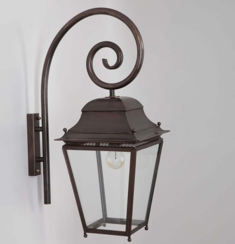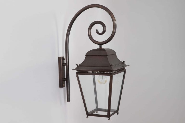 Die klassische Aussenleuchte Landhausstil aus der Serie Chantilly wird in echter Handarbeit in einer französischen Manufaktur gefertigt. Die dekorative hängende Wandlaterne entspricht der Schutzklasse IP 23 und sollte daher eher in etwas geschützteren Außenbereichen montiert werden, zum Beispiel unter dem Dachkasten oder einem überdachten Hausbereich. Der Hersteller verarbeitet bei der Wandleuchte eine E 27-Lampenfassung. Sie verwenden für die klassische Aussenleuchte Landhausstil Modell Chantilly Leuchtmittel bis 75 Watt Leistung. Leuchtmittel sind bei der Lieferung nicht enthalten. wir empfehlen aus optischen Gründen die Bestückung mit Retro-Leuchtmitteln- für ein noch schöneres Design. Die Wandlaterne mit Bischofsstab verlässt das Haus des Herstellers Lumart als Unikatsleuchte mit einem eigenen Stempel. Wir empfehlen Ihnen als Alternative auch die Außenlampe Landhausstil in einem ähnlichen Stil, in Rostoptik mit schmiedeeisernem Wandarm. Wünschen Sie lieber einen Wandarm in Form eines Galgens? Kein Problem. Weitere Wandarme sind optional erhältlich. Die Leuchte wird individuell gefertigt und hat daher auch eine Lieferzeit von etwa 6 Wochen. Sie erhalten die klassische Aussenleuchte Landhausstil Modell Chantilly auch mit diversen anderen Oberflächen (Finishes). Sie finden alle wählbaren Finishes bei uns auf der Startseite unter dem Button FINISHES. Viele weitere Optionen stehen Ihnen hierbei zur Auswahl. Sprechen Sie uns bei Fragen gern an. Viele weitere Modelle an Aussenbeleuchtung im Landhausstil finden Sie bei uns unter der Rubrik Vintage-Aussenbeleuchtung.