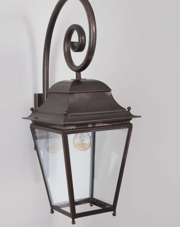 Die Chantilly-Kollektion, inspiriert durch den französischen Stil des frühen 19. Jahrhunderts, ist ein großer Klassiker. Der Laternenkorpus der klassischen Aussenleuchte Landhausstil ist von den Maßen (ohne Wandarm) 43 cm hoch, 28 cm breit und 28 cm tief. Der Wandarm hat eine besonders stilvolle Form und ist auch unter der Bezeichnung Bischofsstab bekannt. Die dekorative Aussenwandleuchte antik-klassisch im Landhausstil ist ein echter Blickfang. Die exklusive Wandlaterne eignet sich als Lichtquelle für die Fassade im Hauseingangsbereich oder auch an größeren Nebengelassen. Die Outdoor-Leuchte für gehobene Ansprüche überzeugt mit ihrem besonderen Design, mit einer Oberfläche iim Finish Alt-Messing sowie den verarbeiteten Materialien.