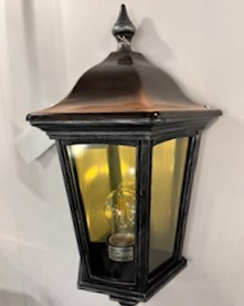 Die gusseiserne klassische Außenwandlampe aus unserer österreichischen Leuchtenserie Ischgl eignet sich sehr schön als Außenbeleuchtung im Hauseingangsbereich oder auch als Terrassenbeleuchtung. Die schwarz-silber-kupferfarbene Außenwandleuchte ist insgesamt 45 Zentimeter hoch. Die Laternenhaube ist 25,5 Zentimeter breit. Die dekorative Außenleuchte hat eine Gesamttiefe von 14 Zentimetern. Die stilvolle Wandleuchte für Außen wird aus Siluminguss hergestellt, einer besonders widerstandsfähigen Aluminiumgusslegierung aus Aluguss in Verbindung mit Silicium. Silicium wird z.B. auch im KfZ- und Flugzeugbau als Material verwendet. Die Oberflächen der klassischen Außenwandlampe sind einbrennlackiert und damit sehr robust verarbeitet. Das schwarz- kupferfarbene Leuchtendach überzeugt dazu mit seiner extravaganten Form.