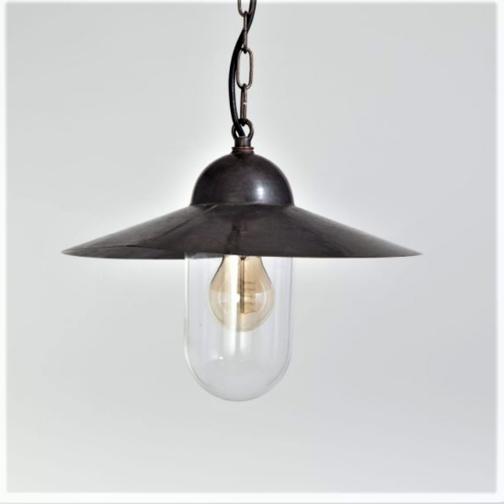 Die Outdoor Hängeleuchte ist 26 cm hoch und hat einen Leuchtenkorpus-Durchmesser von 33 cm. Dieses Leuchtenmodell wird aus Messing hergestellt, mit einem Alt-Messing-Finish als Oberfläche. Weitere verschiedene Finishes sind gern auf Anfrage möglich. Schauen Sie hierfür gern unter dem Button FINISHES. Die Leuchte ist daher z.B. auch als Zinkleuchte oder Nickelleuchte erhältlich-gern auf Anfrage.