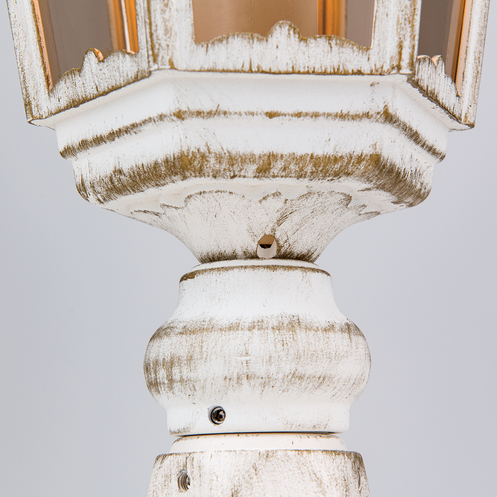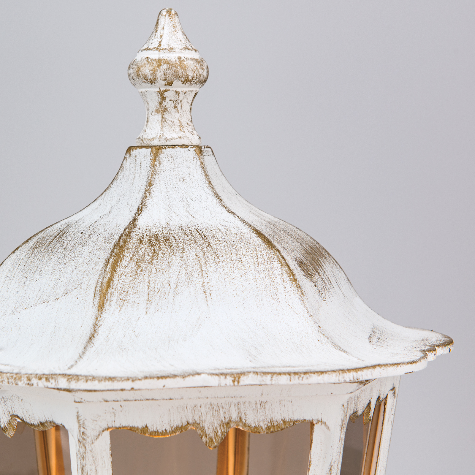 Die klassisch-elegante Optik entsteht bei der klassischen Sockelleuchte Modell Graz durch ein farbliches Zusammenspiel von den Farben Weiß und Gold. Die Leuchte erinnert vom Design an das italienische Rokoko, eine Stilrichtung aus der europäischen Kunst. Die hochwertige Außenbeleuchtung wird aus Siluminguss hergestellt, einer besonders widerstandsfähigen Aluminiumgusslegierung aus Aluguss in Verbindung mit Silicium. Silicium wird z.B. auch im Flugzeugbau verwendet. Die klassische Sockelleuchte 53cm aus unserer Leuchtenserie Graz ist 22 cm breit und 53 cm hoch. Die Fenstereinsätze der Laterne werden aus hochwertigem Rauchglas gefertigt. Rauchglas erfreute sich schon bereits in den sechziger Jahren in der Beleuchtung großer Beliebtheit. Die formschöne Sockellaterne passt zu einer klassischen Architektur wie zum Beispiel weiß verklinkerten Häusern oder auch zu einer mediterranen Bauweise.