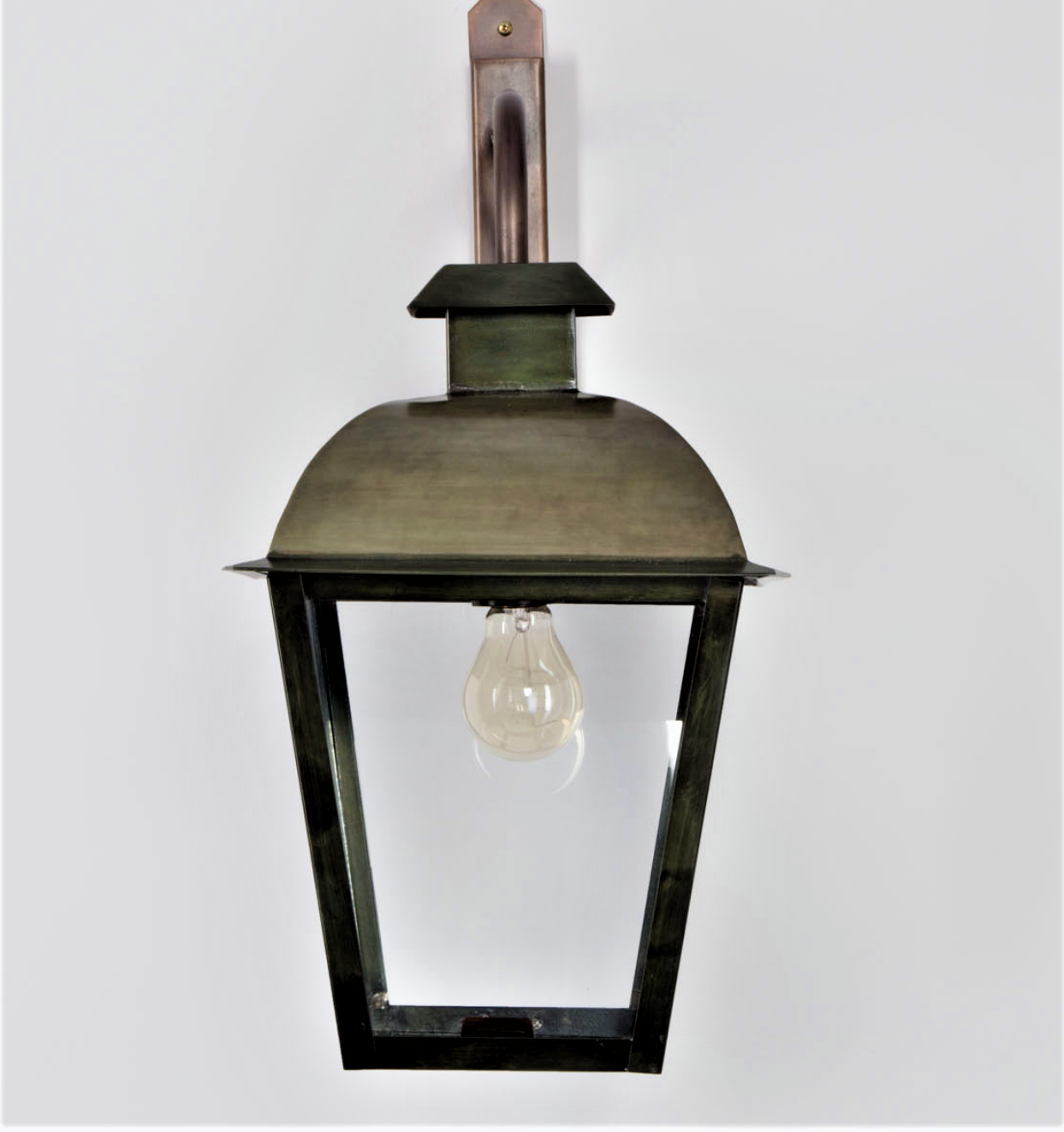 Die vom Stil nostalgisch-klassische Wandlaterne 38cm aus der Leuchtenkollektion Commanderie aus dem Hause Lumart ist eine exklusive Wandlampe für die Fassade im Eingangsbereich oder auch andere geschützte Außenbereiche Ihres Hauses, wo Funktionalität und Design Ihrer Außenbeleuchtung im Einklang stehen sollen. Das edle Finish dieser klassischen Aussenwandleuchte aus Zink mit patininierter Zink-Oberfläche als Finish sowie die Verarbeitung von Echtglas passen sehr gut als stilvoller Kontrast zu einer modernen Architektur, aber auch insbesondere zu dem heute sehr gefragten Landhausstil. Die hängende klassische Wandlaterne Modell Commanderie ist für verschiedene Stilrichtungen einsetzbar. Die nostalgische Außenwandleuchte der Serie Commanderie entspricht der Schutzklasse IP 23 und sollte daher in etwas geschützteren Außenbereichen montiert werden. Die Leuchtenhöhe beträgt 38 cm. Die hochwertig und aufwendig verarbeitete Aussenleuchte ist 26 cm breit. Die Aussenleuchte entspricht der Schutzklasse 1.