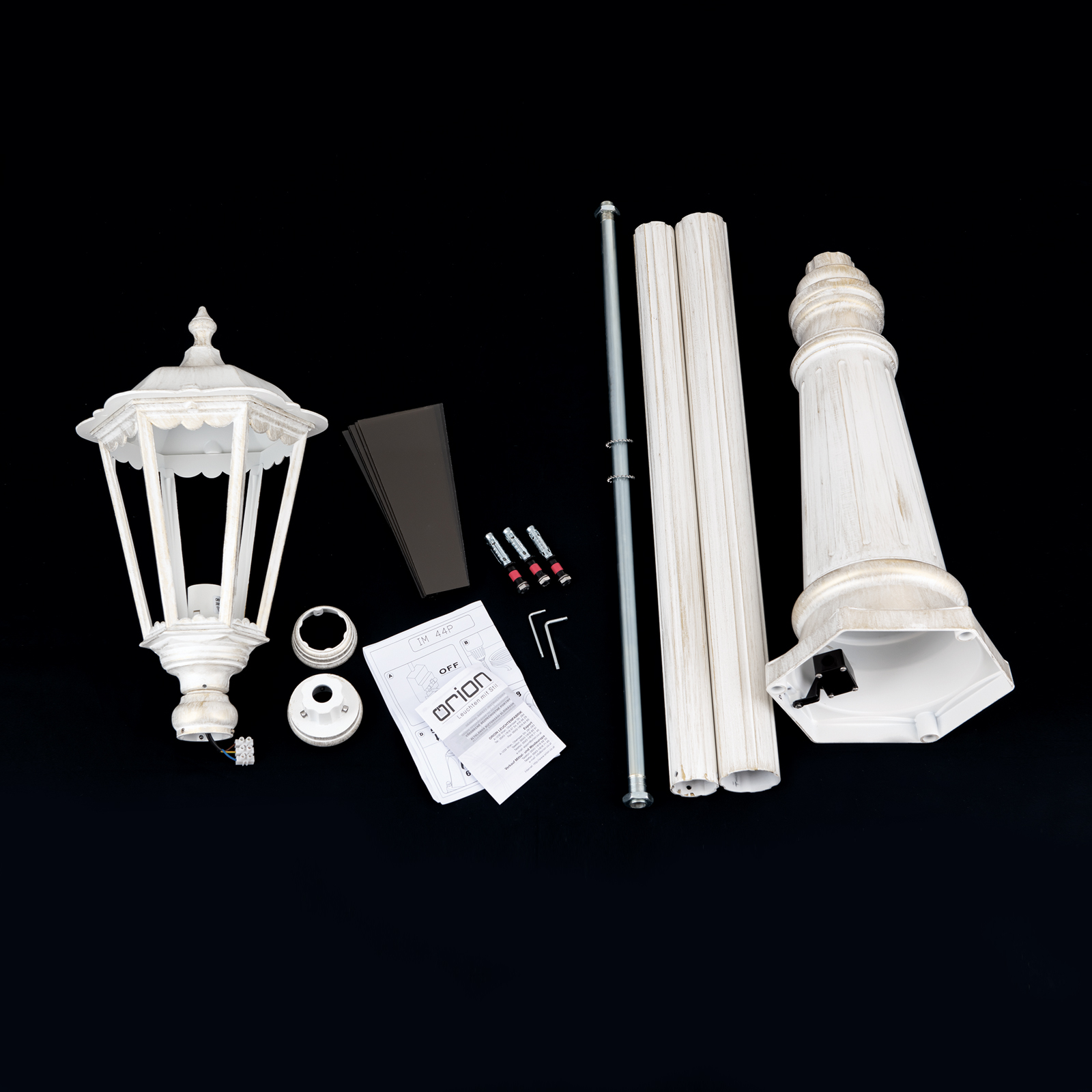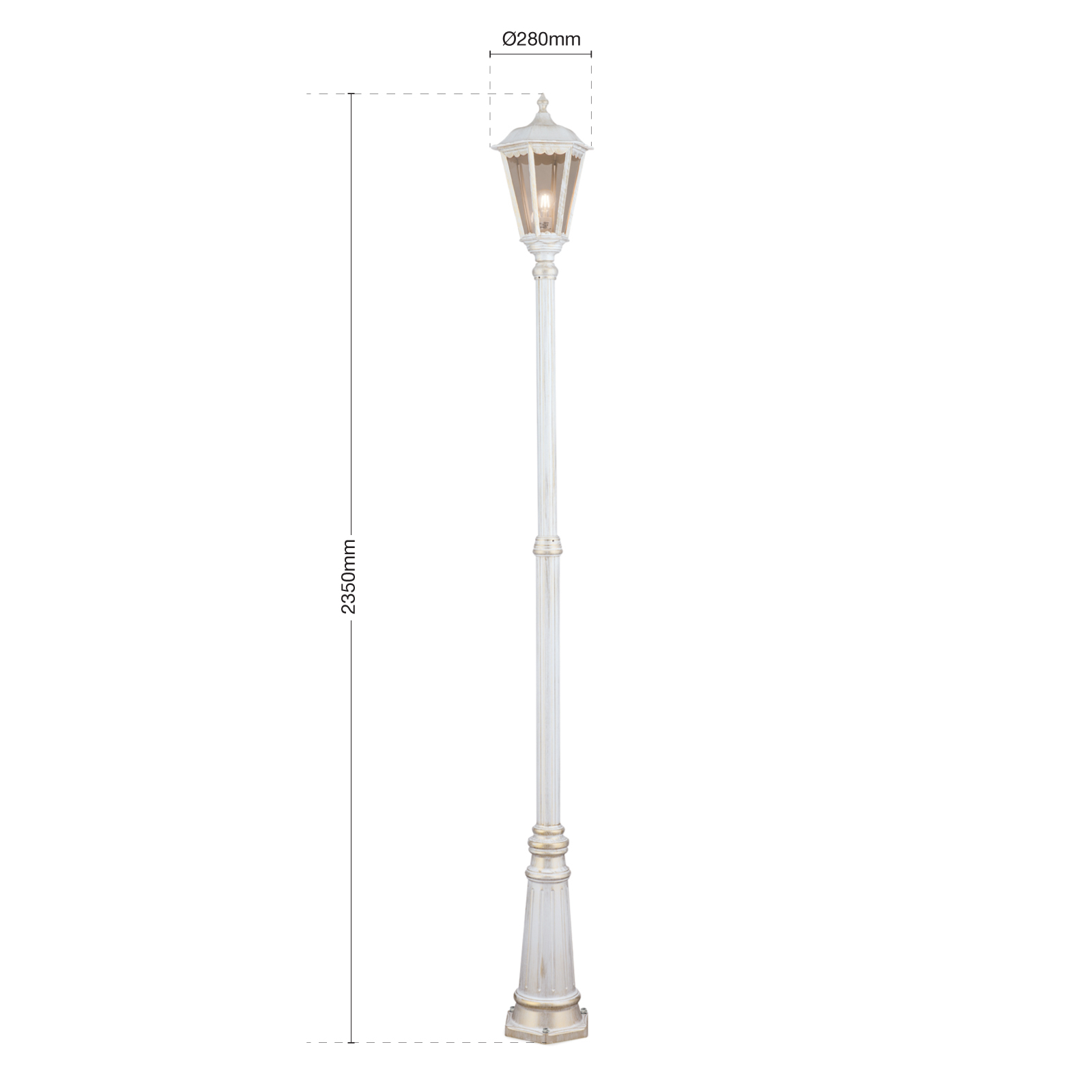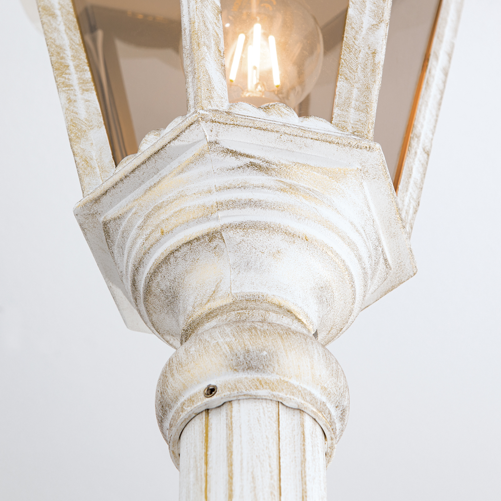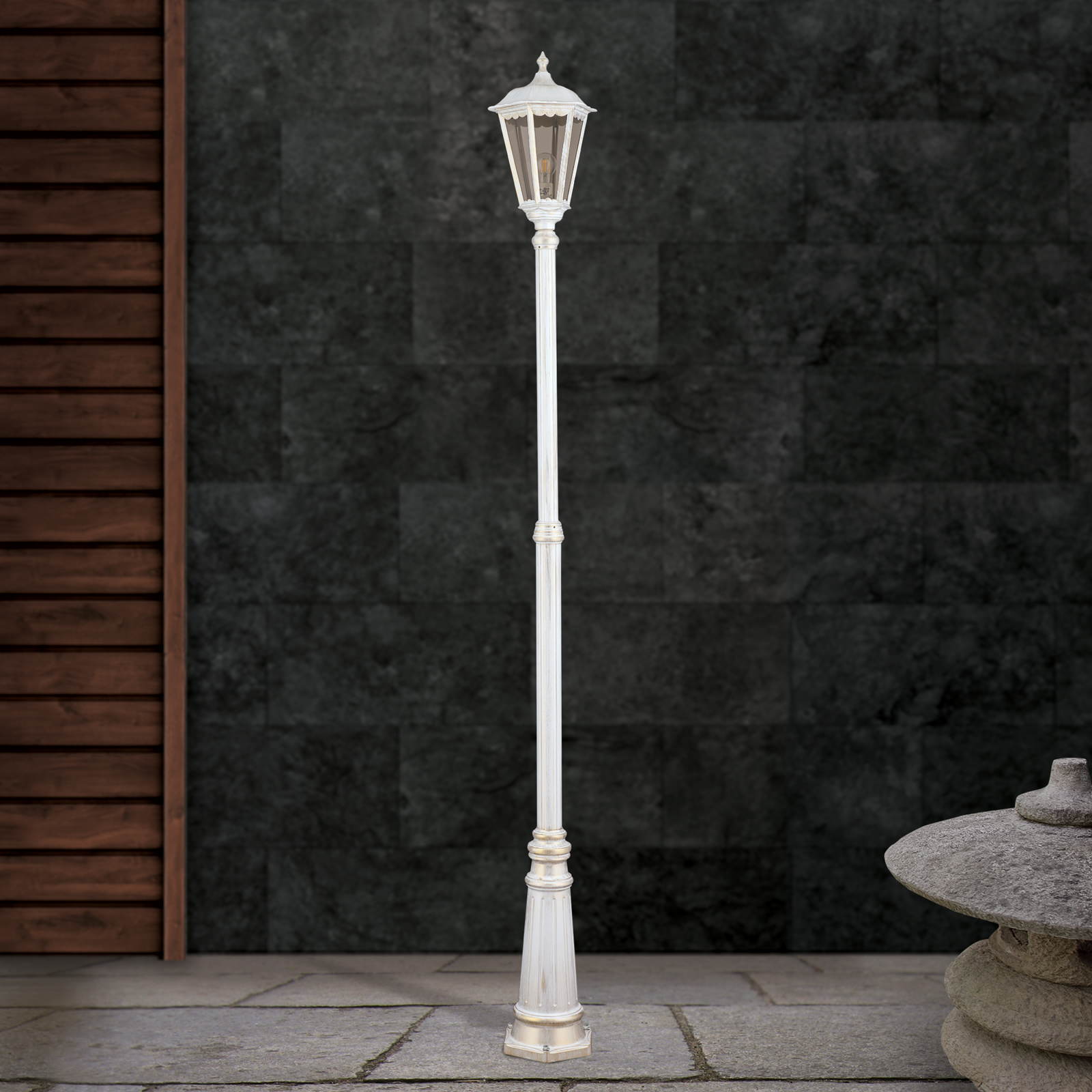 Die klassische Wegeleuchte weiß aus unserer Leuchtenserie Graz besticht mit ihrem besonderen Antlitz, einem Farb-Melange aus Weiß und Gold. Die hochwertige Gartenleuchte wird aus Siluminguss hergestellt, einer besonders widerstandsfähigen Aluminiumguss-Legierung aus Aluguss in Verbindung mit Silicium. Silicium wird z.B. auch im Flugzeugbau verwendet. Die dekorative vom Stil klassisch-antike Gartenbeleuchtung gehört mit einer Gesamthöhe von 2,49 Metern zu den etwas höheren Mastleuchten des österreichischen Herstellers Orion-Leuchten. Der Leuchtenkorpus hat einen Durchmesser von 28 Zentimetern und wird mit hochwertigem sechs Rauchglaseinsätzen bestückt. Die vom Design eher verspielt elegante Außenleuchte erinnert etwas an den italienischen Rokoko-Stil. Die verspielte Form passt sehr schön zu weiß verklinkerten Immobilien im klassischen auch mediterranen Baustil. Setzen Sie mit der richtigen Garten Wegbeleuchtung Ihren Außenbereich stilvoll in Szene und bewegen Sie Ihre Besucher und Gäste mit einem ansprechenden Exterieure zum Einkehren.
