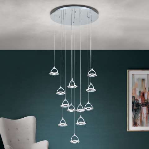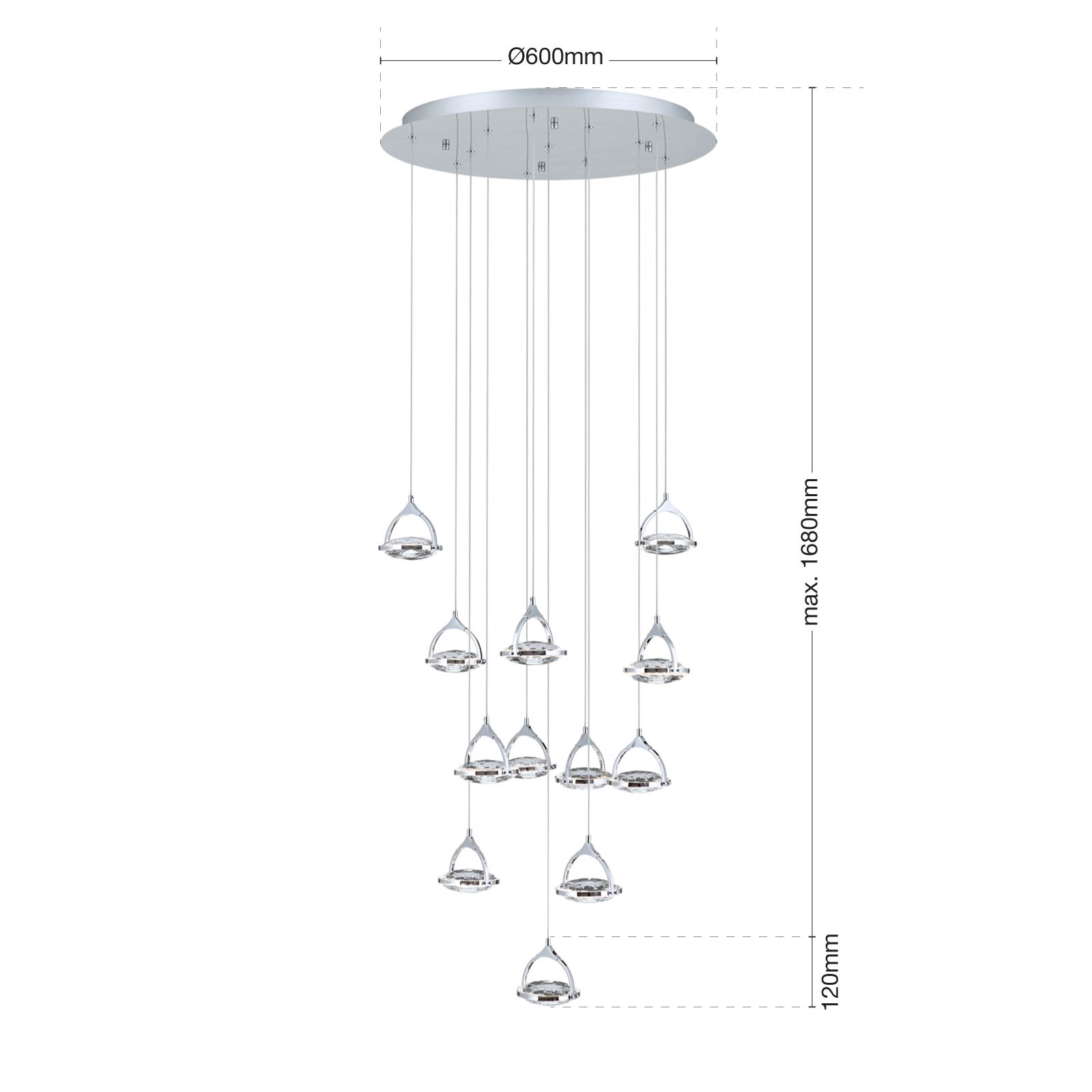 Die Kristall-Pendelleuchte Silber ist dimmbar und kann mit einem LED- oder Phasenabschnittdimmer in der Helligkeit reguliert werden. So lässt sich das Licht jederzeit an die gewünschte Stimmung anpassen – von hellem Arbeitslicht bis zur gemütlichen Hintergrundbeleuchtung. Das Nettogewicht der Leuchte beträgt 13 kg.