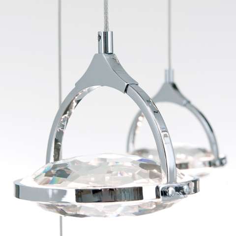 Die Kristall-Pendelleuchte Silber verbindet modernes Design mit luxuriöser Lichtwirkung. Ihre handgeschliffenen K9 Kristalle, die speziell von ORION Leuchten Wien entwickelt wurden, sorgen für eine brillante Lichtbrechung und eine außergewöhnliche Sternenhimmel-Optik. Durch die filigrane Abhängung scheinen die Kristalle fast schwerelos im Raum zu schweben und setzen edle Lichtakzente.