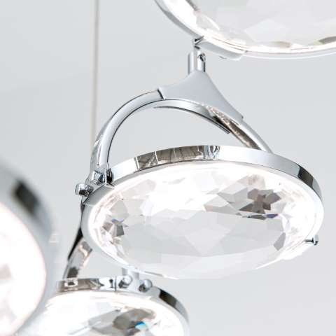 Das Gestell aus hochwertigem Stahl in modernem Silber verleiht der luxoriösen Kristall Hängeleuchte einen modernen Touch, während die hochwertigen K9 Kristalle für funkelnde Reflexionen sorgen. Mit einem Durchmesser von 60 cm und einer höhenverstellbaren Abhängung von bis zu 180 cm passt sich die Deckenleuchte flexibel an verschiedene Raumhöhen an.