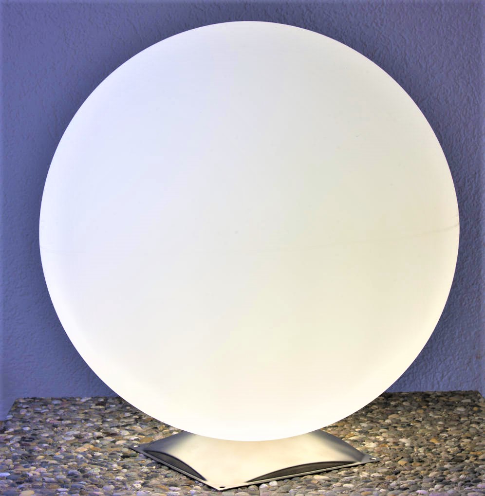 Die stilvolle Kugel-Aussenleuchte 60cm aus unserer Leuchtenserie Olymp ist im Durchmesser 60 cm breit. Die Kugelhaube wird aus UV-beständigem Polyethylen hergestellt und stammt aus einer deutschen Manufaktur. Die vom Stil zeitlos bis moderne Aussenbeleuchtung wird in Deutschland hergestellt und besticht das Auge des Betrachters mit ihrer leicht samtig wirkenden weiß satinierten Oberfläche. Alle Schrauben sind bei der dekorativen Leuchte aus Edelstahl. Die Oberfläche der hochwertigen Kugel-Aussenleuchte ist pflegeleicht, kratzunempfindlich und schlagfest. Die moderne Gartenleuchte kann mit ihrem 27x 27 cm großem Edelstahlfuß sowohl mobil als auch ortsfest eingesetzt werden. Sie montieren die Leuchte auf festem Untergrund mit Hilfe der am Sockelfuss vorbereiteten vier Befestigungsbohrungen. Die hochwertige Kugel-Aussenleuchte spendet ein vollkommen blendfreies, wohliges und gleichmäßiges Licht in alle Richtungen. Die Platzierung ist dabei im Terrassenbereich, im Wegebereich oder auch im vorderen Hauseingangsbereich gleichsam empfehlenswert und vom Design ein schöner Blickfang für Ihre Gäste, Besucher und natürlich für Sie selbst.
