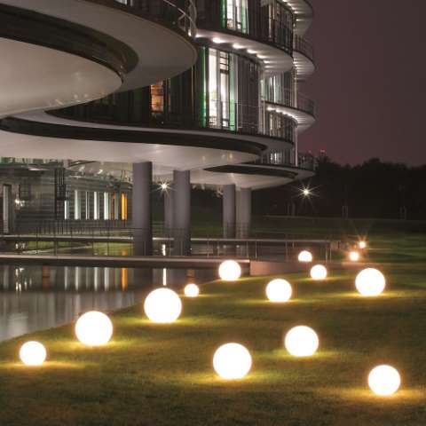 Eine stimmungsvolle Leuchte für den exklusiven Geschmack- insbesondere in Kombination verschiedener Leuchtengrößen. Materialien bester Qualität, jahrelange Erfahrung und erstklassige Verarbeitung zeichnen die Kugel-Aussenleuchte Olymp 40 aus. Die Leuchte in Kugelform ist mit IP 45 seewasserbeständig und für die Platzierung in Gewässernähe bestens geeignet. Die weiße Außenleuchte hat einen Durchmesser von 40 cm. Die dekorative Gartenbeleuchtung wird unten mit einem 10 cm großen eloxierten Aluminiumfuss fest montiert. Sie erhalten die Qualitätsleuchte optional auch inklusive in der Leuchte integriertem Bewegungsmelder. Zuverlässige und äußerst präzise Sensoren starten Ihre Haus- oder Gartenbeleuchtung hiermit vollautomatisch bei jeder erfassten Bewegung. Selbstverständlich können Sie die Reaktionsempfindlichkeit und die Leuchtdauer individuell einstellen. Der hochwertige Bewegungsmelder hat eine Reichweite von bis zu 12 Metern und einen Radius von 180 Grad. Die Lampenfassung der Größe E 27 wird mit Leuchtmitteln bis 40 Watt bestückt. Leuchtmittel sind bei Lieferung nicht enthalten. Energiesparlampen sind technisch bedingt nicht in Kombination mit einem Bewegungsmelder einsetzbar. Allerdings gibt es ja heute ebenso energieeffiziente LED-Leuchtmittel mit niedrigem Stromverbrauch. Damit schonen Sie sowohl Ihren Geldbeutel als auch die Umwelt. Die wetterfeste Kugel-Aussenleuchte Olymp 40 ist als Terrassenbeleuchtung oder auch als Wegeleuchte einsetzbar. Schon mit wenigen Ballleuchten verzaubern Sie Ihre Außenanlagen, sichern Wege und Treppen und schaffen sich so ein Wohnzimmer unter freiem Himmel. Sie erhalten auf die hochwertige Kugelleuchte ab Werk 3 Jahre Garantie und 10 Jahre Garantie auf deren UV-Beständigkeit. Wir empfehlen für ein stimmungsvolles Licht die Verwendung von Leuchtmitteln mit warm-weißem Licht (2700 Kelvin). Die dekorative Garten-Lichtkugel hat die Schutzklasse 1. Die klassische Aussenleuchte besteht aus formstabilem Polyethylen. Die 40 cm große Kugelleuchte Garten ist bei uns im Shop auch mit 50 cm Durchmesser erhältlich. Schauen Sie für weitere Details dazu gern unter dem folgenden Link Kugel Aussenleuchte Olymp 50.