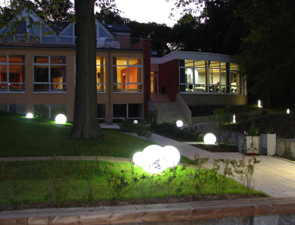 Die weiße Kugelleuchte mit Bewegungsmelder 30cm unserer Modellserie Olymp hat einen Korpus-Durchmesser von 30 cm. Der im Durchmesser 10 cm große eloxierte Aluminiumfuss sorgt bei der Montage auf festem Untergrund für die Standfestigkeit der dekorativen Aussenbeleuchtung. Die dekorative Kugelleuchte mit Bewegungsmelder bringt Licht in dunkle Ecken Ihrer Außenanlagen, ist als Terrassenbeleuchtung oder auch als Wegeleuchte einsetzbar. Die Kugellampe für Außen eignet sich natürlich ebenso gut als Parkplatzbeleuchtung, wo nicht ständig Licht brennen soll. Der Radar-Bewegungsmelder arbeitet mit seinen in der Leuchte nach außen nicht sichtbaren Sensoren sehr präzise und reagiert bei jeder erfassten Bewegung vollautomatisch- das Licht geht an. Sie bestimmen dabei mit Ihrer individuellen Einstellung die Leuchtdauer und Reaktionsempfindlichkeit (Reichweite 2,5 bis 12 Meter). Das Gehäuse der Kugelhaube besteht aus formstabilem Polyethylen. Die in Deutschland gefertigte hochwertige Kugelleuchte mit Bewegungsmelder ist mit einer E 27-Lampenfassung für herkömmliche Glühlampen und LED-Leuchtmittel bis 40 Watt Leistung geeignet. Leuchtmittel sind bei Lieferung nicht enthalten.