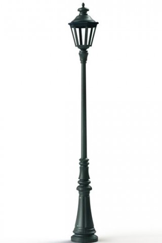 Die stilvolle LED Aussenleuchte Gartenlaterne gehört zu unserer Leuchtenserie Louis XIII. Die detailreich verzierte Mastleuchte wird aus langlebigen Aluminium gefertigt. Die stilvolle Designer Gartenleuchte ist von ihren Maßen 262 cm hoch und 34,4 cm breit. Die klassisch-antike LED-Gartenbeleuchtung ist mit der Schutzart IP 44 wetterfest, so dass Sie sich sehr gut für den Einsatz im Freien eignet. Die hochwertige Mastleuchte überzeugt am Sockel mit diversen ringförmigen Verzierungen. Die Gartenleuchte steht auf einen rundförmigen im Durchmesser 30 cm breiten Sockelfuß. Die zierende dekorative Pinienzapfen-Spitze auf der Leuchtenhaube ist dabei charakteristisch für diese Leuchtenserie. Zweifelsohne eignet sich die klassisch-antike Gartenlaterne mit LED sowohl als Außenbeleuchtung im Landhausstil, als stilgerechte Beleuchtung von Gehöften, historischen Villen und klassischen Architekturhäusern. Die Outdoor-Beleuchtung wird hier mit einer im Leuchtendach integrierten LED-Platine angeboten. Mit der Lichtfarbe 3000 Kelvin erzeugt die lichttechnisch moderne Außenlampe absolut energieeffizient ein warmweißes und blendfreies Licht. Mit einer Leistung von 13 Watt ist die Leuchte sehr sparsam im Stromverbrauch. Die Designer Standleuchte verfügt über sechs trapezförmige Echtglas-Fenstereinsätze. Sie wählen bei der LED Aussenleuchte Gartenlaterne je nach Geschmack zwischen den Farben schwarz, antik-rustikal (dunkelbraun), Patina Grün, goldfarbener Patina und einem exklusiven Messing-Finish (getönt und lackiert). Letztere wird in Verbindung mit einem schwarzfarbenen Sockel angeboten, ebenfalls aus Aluminum. Bei der Messing-Variante dient schwarz lackiertes Aluminium als Basismaterial, auf das eine Messing-Patina gelegt wird, um den Messing-Finish-Effekt zu erzeugen.