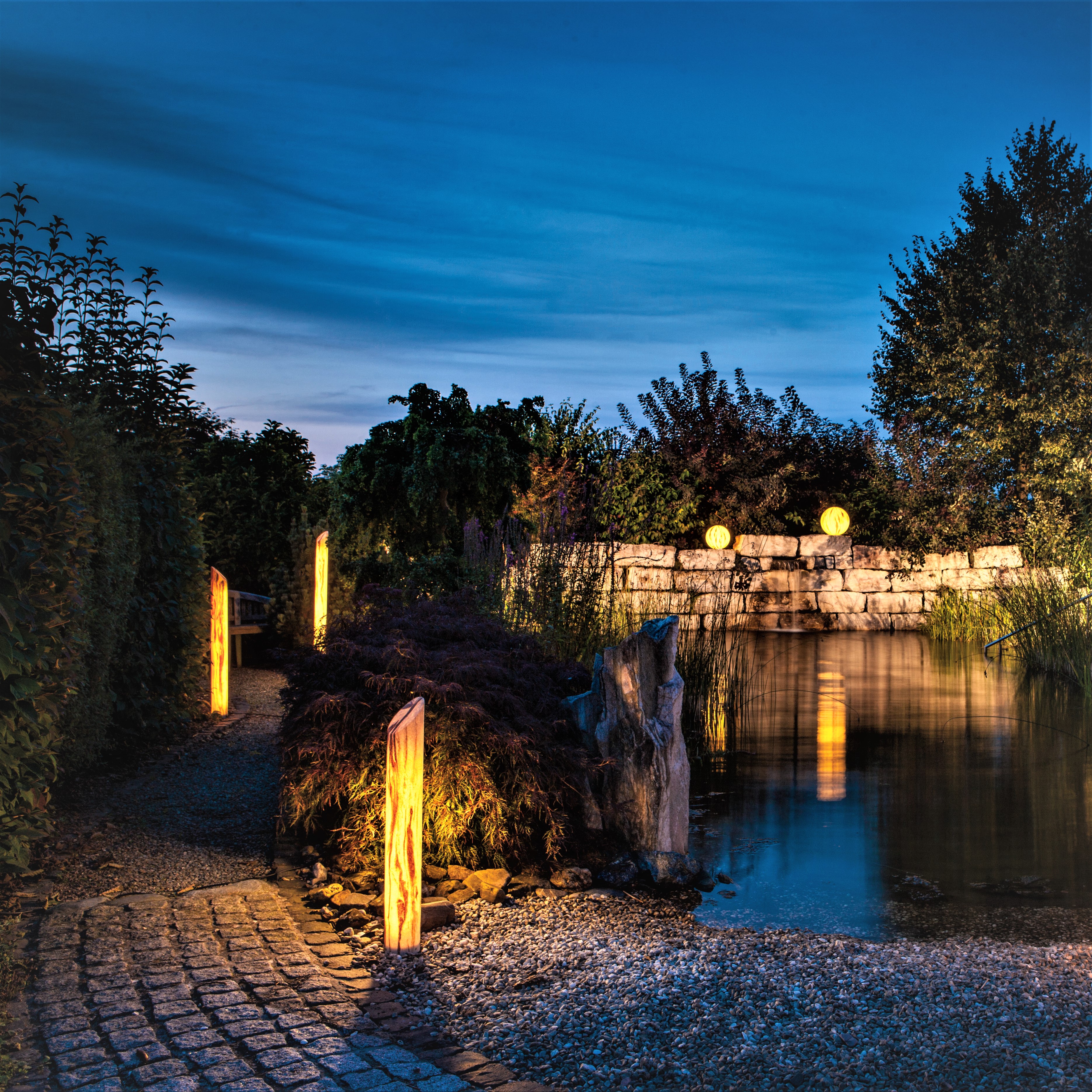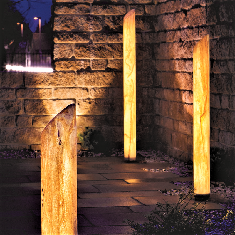 Die vom Design moderne LED-Wegeleuchte Modell Dubai gehört zu unseren exklusiven Gartenleuchten mit ganz besonderem Charme. Die mit strukturiertem Naturstein beschichtete Außenleuchte besticht in der Dämmerung und Dunkelheit mit einem ganz besonders stimmungsvollen Licht. Die Design-Aussenleuchte aus der Leuchtenserie Dubai besteht vom Gehäuse aus Acrylglas (PMMA XT) und ist außen mit einer einzigartigen von Hand aufgetragenen Quarzsandsteinoberfläche versehen. Die in einer deutschen Manufaktur hergestellte hochwertige Gartenleuchte wird hier mit innovativer LED-Technik angeboten. Der Fuß aus eloxiertem Aluminium (matt/silber E6/EV1) sorgt für die erforderliche Standfestigkeit der Leuchte. Die stilvolle LED-Wegeleuchte Modell Dubai lässt mit umlaufend symmetrischer Lichtstärkenverteilung auch an der obigen schrägen Abdeckung Licht austreten. Die LED-Außenbeleuchtung Modell Dubai wirkt mit der steinernen Optik in Erdtönen sowohl am Tage als auch abends in Beleuchtung mit ihrem besonders anheimelnden Licht. Setzen Sie tolle Lichtakzente im Terrassenbereich, in Beetanlagen oder im vorderen Hauseingangsbereich. Lassen Sie sich Gäste und Besucher auch im Dunkeln mit einer dekorativen Wegbeleuchtung bei Ihnen sicher bewegen und entspannt ankommen. Die sehr hochwertig verarbeitete Außenleuchte spendet dabei ein blendfreies und für die Augen sehr angenehm und warmfarbiges Licht. Sie wählen bei der Gartenbeleuchtung mit LED zwischen drei verschiedenen LED-Ausführungen: