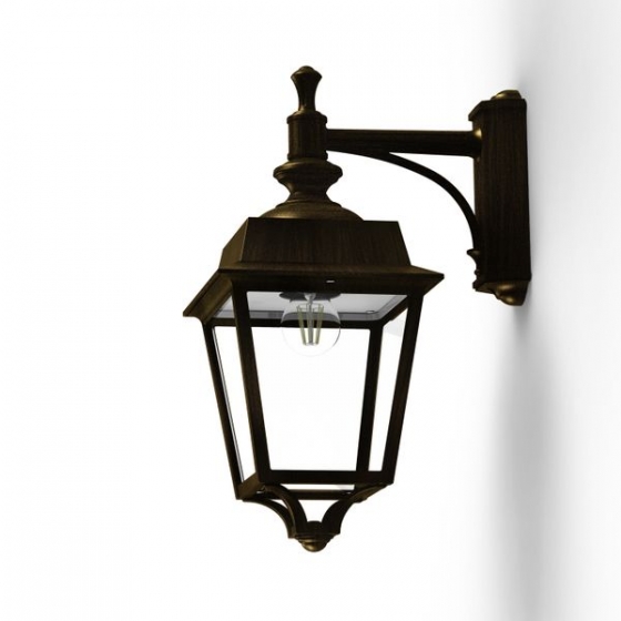 Natürlich eignet sich die Außenleuchte auch sehr gut als Außenbeleuchtung für Gastronomie und Gewerbe. Begeistern Sie Ihre ankommenden Gäste mit einer ansprechenden Außenbeleuchtung. Wünschen Sie die Wandlaterne ohne Bewegungsmelder? Das ist selbstverständlich machbar. Die im Design klassische Außenbeleuchtung wird mit einer E 27-Lampenfassung gefertigt. Sie bestücken die Landhaus Aussenleuchte mit Bewegungsmelder mit Leuchtmitteln bis zu 60 Watt Leistung. Leuchtmittel sind bei der Lieferung nicht enthalten. Wir empfehlen bei der Klarglas-Variante aus optischen Gründen auch die Bestückung mit sogenannten Retro-Leuchtmitteln. Die Lichtfarbe Warmweiß (z.B. 2700 Kelvin) sorgt für eine eher stimmungsvolle Lichtatmosphäre, während kaltweißes Licht generell mehr Helligkeit erzeugt. Setzen Sie mit dieser außergewöhnlichen Wandleuchte in Ihrem Außenbereich tolle Lichtakzente. Alle Leuchten des Herstellers Roger Pradier verlassen die Manufaktur mit einer zusätzlichen technischen Garantie von 3 Jahren. Weitere Leuchtenarten wie eine Outdoor-Hängeleuchte, Sockelleuchten und Wegeleuchten sowie auch eine zweiflammige Mastlaterne runden das Leuchtensortiment der Modellserie Vogese 1 ab. Befestigungsmaterial für die Wandmontage ist bei der Lieferung inklusive. Alternativ empfehlen wir dann auch die dreiseitige Außenwandlampe mit Bewegungsmelder Vogese 1.