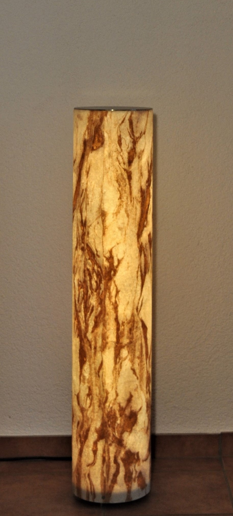 Die stilvolle Luxus LED-Aussenleuchte Dubai 102 mit ihrer Turmform bietet mit einer Leuchtenhöhe von 1,02 Metern viel Gestaltungsraum. Jede Leuchte ist ein Unikat. Das schlagfeste Rohrgehäuse ist im Durchmesser 21 Zentimeter tief und wird aus PMMA XT (hochwertiges Acrylglas) gefertigt und die Sandsteinbeschichtung dabei von Hand aufgetragen. Der Fuß der Leuchte besteht aus eloxiertem Aluminium. Der deckelnde Abschluß der stilvollen Aussenleuchte besteht aus Edelstahl. Die dekorative Säulenleuchte ist ortsfest und hat bei einem Lichtaustritt von 360° eine symmetrische Lichtverteilung. Die Luxus LED-Aussenleuchte Dubai erzeugt ein blendfreies, warmes Licht und sorgt so für eine angenehme und stimmungsvolle Beleuchtung von Flächen und Wegen im öffentlichen als auch privaten Bereich.