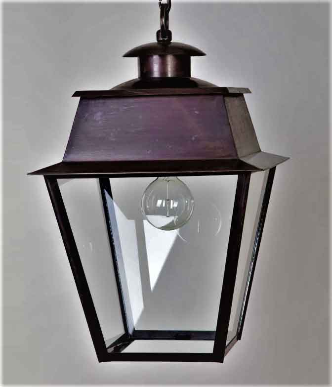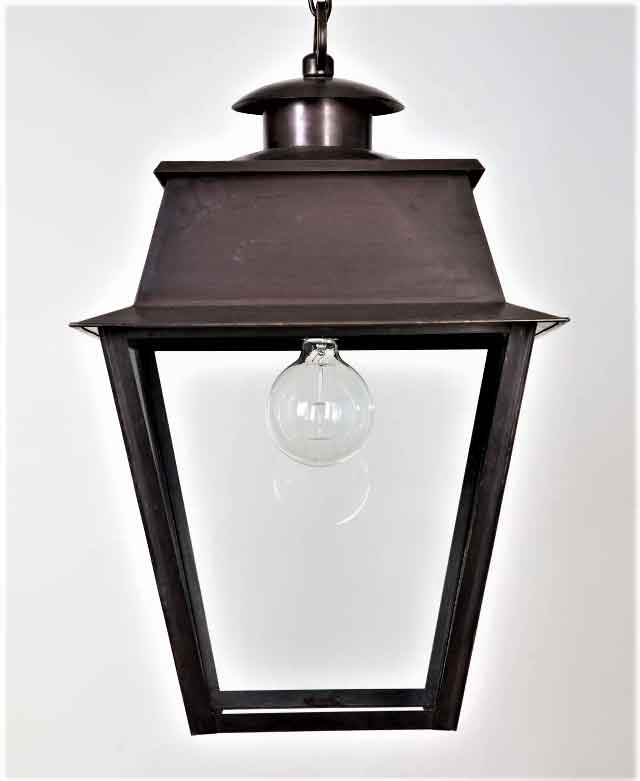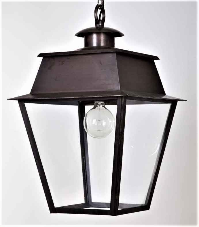 Die Aussenbeleuchtung im Nostalgie-Look wird aus massivem Messing gefertigt und inklusive der Deckenhalterung und 80 cm langr Kette aus massivem Messing geliefert. Die dekorative Deckenbeleuchtung mit Hängelaterne wird in einer französischen Manufaktur in echter Handarbeit fachmännisch hergestellt. Jede vom Design antik-nostalgische Hängelaterne wird dabei nach Auftrag als Einzelstück angefertigt. Die Inspiration für das stilvolle Design der Messing-Aussenleuchte Landhausstil erfolgte dabei durch die früheren städtischen Laternen aus dem 19.Jahrhundert. Die große Hängeleuchte mit dem Finish Alt-Messing ist ein echter Eyecatcher und kombiniert Eleganz, Funktionalität und Design. Die Fenstereinsätze bestehen bei der Aussenleuchte aus Echtglas.
