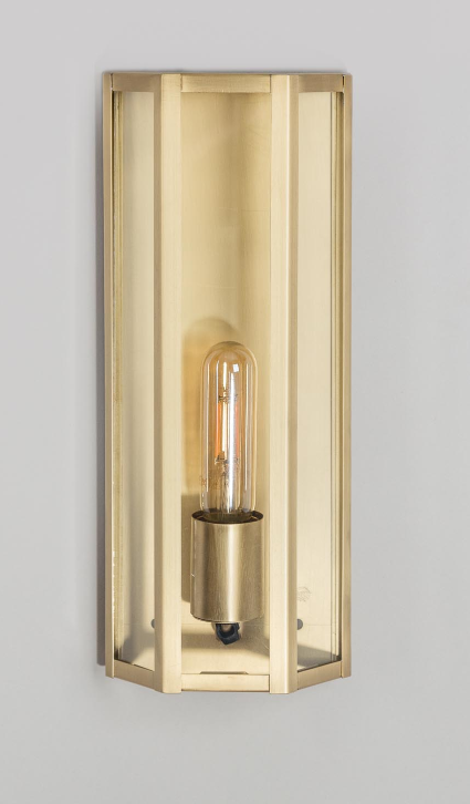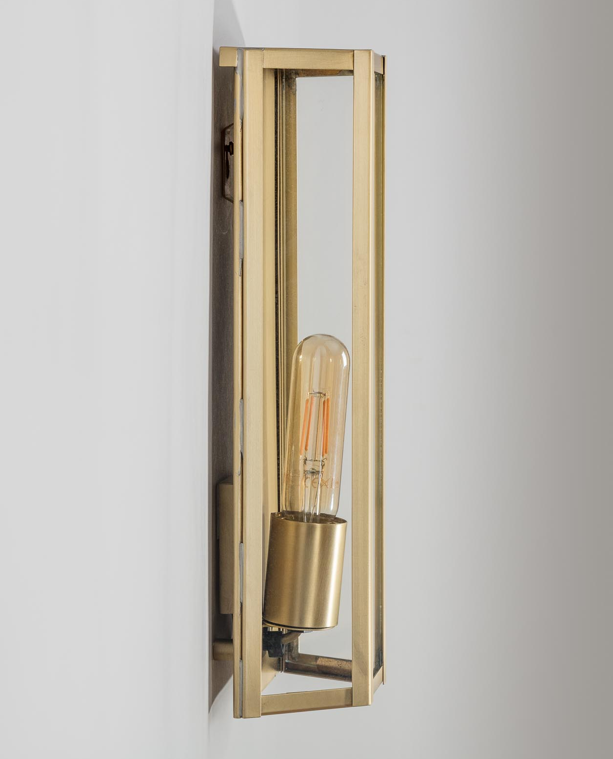 Die Messing Aussenwandleuchte aus der Kollektion Atique wird aus Messing mit Echtglaseinsätzen hergestellt. Die edle Außenleuchte passt mit ihrer länglichen Quaderform im Hochformat gut zu einem Eingangsbereich mit architektonisch klaren Linien. Die Messing Aussenwandleuchte ist von den Maßen 35 cm hoch, 14 cm breit und schmale 9 cm tief. Die von der Form eher schmale Messing-Aussenbeleuchtung ist eine Kombination aus Eleganz, Design und Funktionalität. Die Messing Außenleuchte ist ein echtes Unikat aus einem Atelier in Frankreich. Das Finish gebürstetes Messing gibt der zeitlosen Messing Aussenwandleuchte ihre raffinierte besondere Optik.