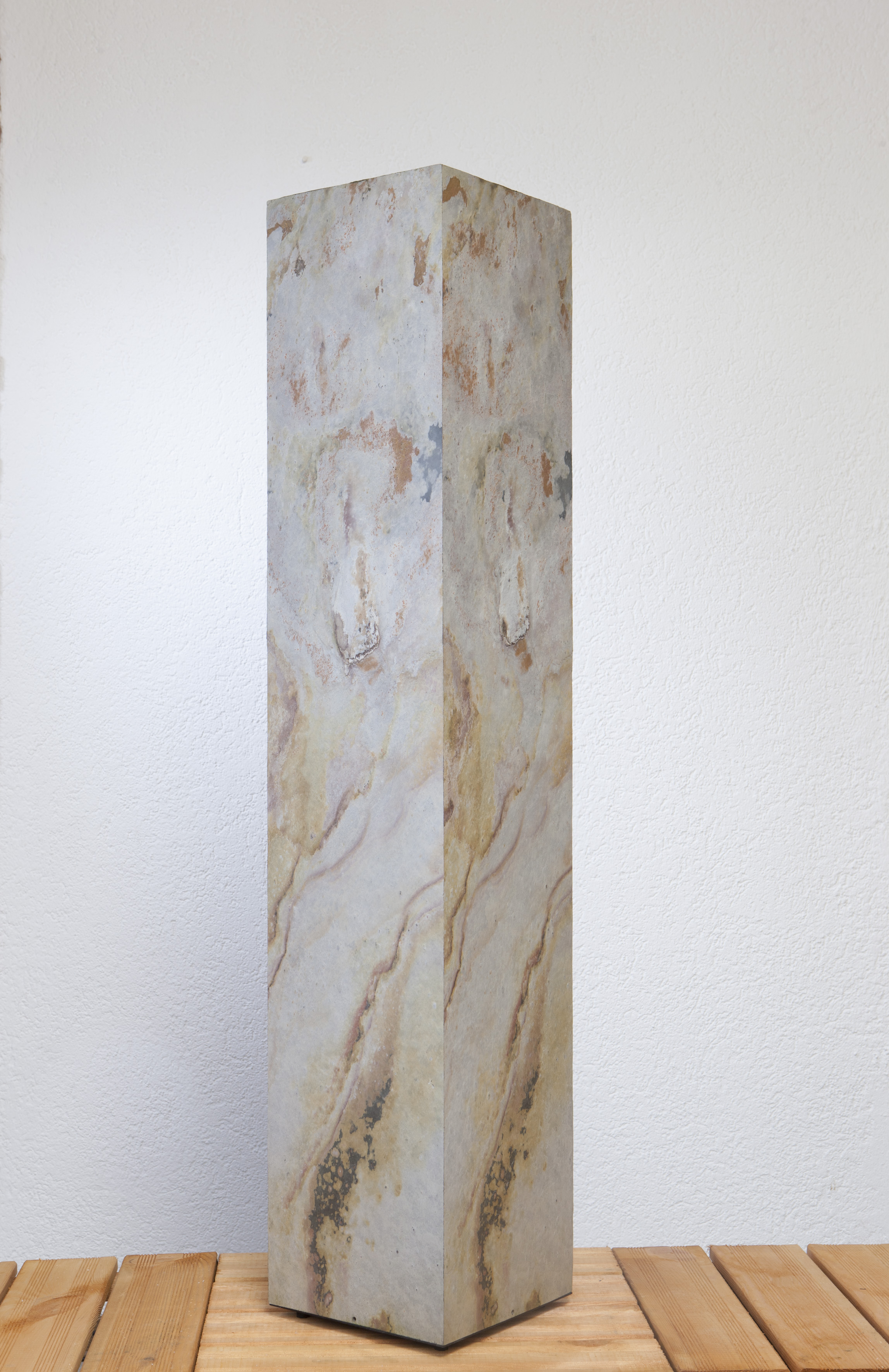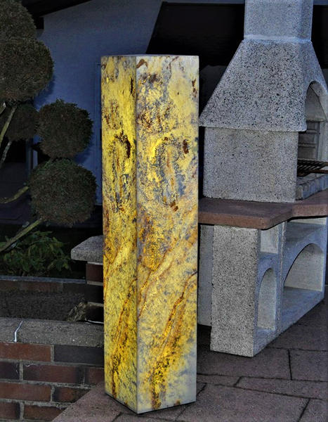 Die moderne Aussenleuchte Canyon ist mit einer Leuchtenhöhe von 130 cm die größte Säulenleuchte der Serie Canyon. Der quaderförmige Korpus ist 20 cm breit und 20 cm tief. Mit ihrem warmen Licht sorgt die Schieferleuchte für eine äußerst angenehme Lichtatmosphäre. Die Oberfläche besteht aus transluzentem Naturschiefer, der auf einen GFK-verstärkten Hohlkörper in sorgfältiger Handarbeit aufgetragen wird. Die exklusive Gartenbeleuchtung eignet sich als außergewöhnliche Lichtquelle im vorderen Hausbereich, im Terrassenbereich oder auch als Wegbeleuchtung mit besonderen Flair. Der Name Canyon steht für ein Lichtschauspiel der Berge im Westen der USA. Beeindruckend und außergewöhnlich. Die Kombination aus vermeintlich kaltem Gestein und warmem Licht macht diese Schieferleuchte zu einer ganz besonderen Leuchte- einem Unikat. Die hochwertige Säulenleuchte wird hier mit verschiedenen LED-Lichttechniken angeboten: